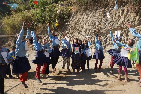 나는 부인솔자였던 민과 함께 너빈, 너비나 남매의 집에서 지냈다. 건물 짓는 일을 하는 빠아버지 덕분에 비교적 빠르게 복구된 어여쁜 분홍색 집이었다. 마을에는 사립, 공립 딱 두 학교가 있었는데, 너빈과 너비나는 마을 언덕 위쪽에 있는 사립학교에 다녔다. 우리가 활동하는 공립학교와는 거리가 꽤 떨어져 있었다. 너빈과 너비나는 항상 내가 있는 공립학교 쪽으로 하교했다. 학교를 감싸고 있는 언덕에 앉아서 매일 나를 기다렸다. 우리 집은 학교와 가까운 편이었는데도 매일 나를 마중 나왔다. 그들을 발견하고 손짓하면 곧바로 수줍은 듯 몸을 배배 꼬면서 손을 흔들어주었다. 나를 계속 바라봐준 것 같았다. 수업을 끝내고 나오면 어느새 교복을 갈아입고선 운동장까지 내려와 있었다. 한참 친구들과 놀고 있다가도 내가 나타나면 슬쩍 다가와 안겼다. 살아오며 계속 교육활동을 해온 터라 아이들에게 수없이 안겨봤지만, 유독 그 작고 짧은 포옹이 기억에 남는다. 모든 이에게 사랑받으려 애쓰던 내게 그저 반가움만이 가득한 인사는 참 오랜만이었다. 어쩌면 이때가 처음일지도 모르겠다. 아, 남매가 머리를 싸매고 지어준 네팔리 남이름은 ‘자야’다.