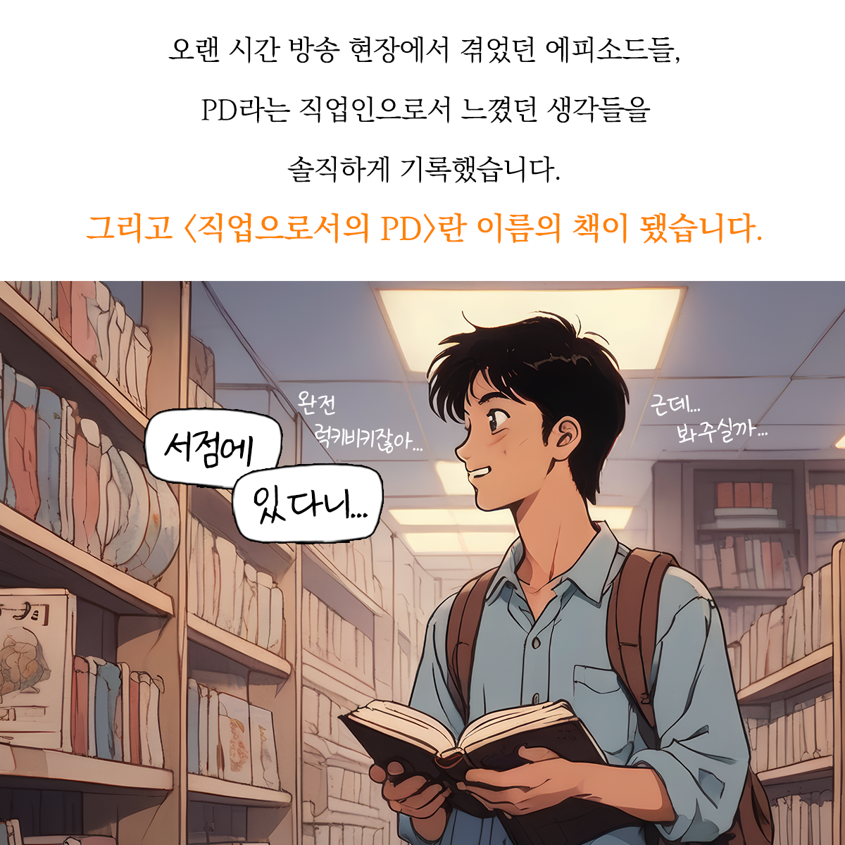 책에는 창작의 보람이란 어정쩡한 이유에 사로잡혀, 음지에서 그것도 20년간 프리랜서 PD로 밥벌이했던 이야기들을 담았습니다. 아무래도 음지에서의 밥벌이 이야기라서, PD라는 직업의 화려한 현재도, 장밋빛 미래도 없고요... 다만, 제가 겪었던 방송 제작 현장의 지극히 현실적인 모습들이 있어요. PD가 되길 원했던 예전의 저라면, 어서 이야기를 해달라고 졸라댈 게 분명한 실제 현장의 이야기들을 담았습니다.