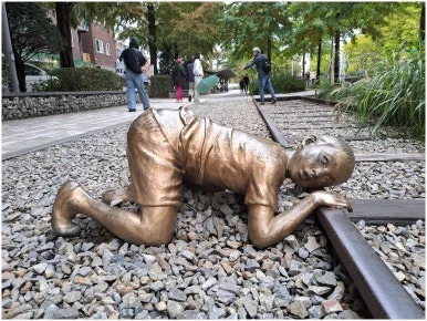 4구간은 서강대 역에서 홍대역으로 넘어가는 도보 육교 길을 건너간다. 숲길에는 메타세쿼이아와 단풍나무가 빽빽하게 자라고 아름다운 숲길 책거리로 시작된다. 참새 방앗간 사거리에는 철도 승무원이 기차를 세우며 손 짓으로 신호를 하고 있고, 머리에 바구니를 인 아낙네가 한 손으로는 어린아이 손을 꼭 잡고 등에는 갓난애를 업고 기찻길을 건너고 있다.