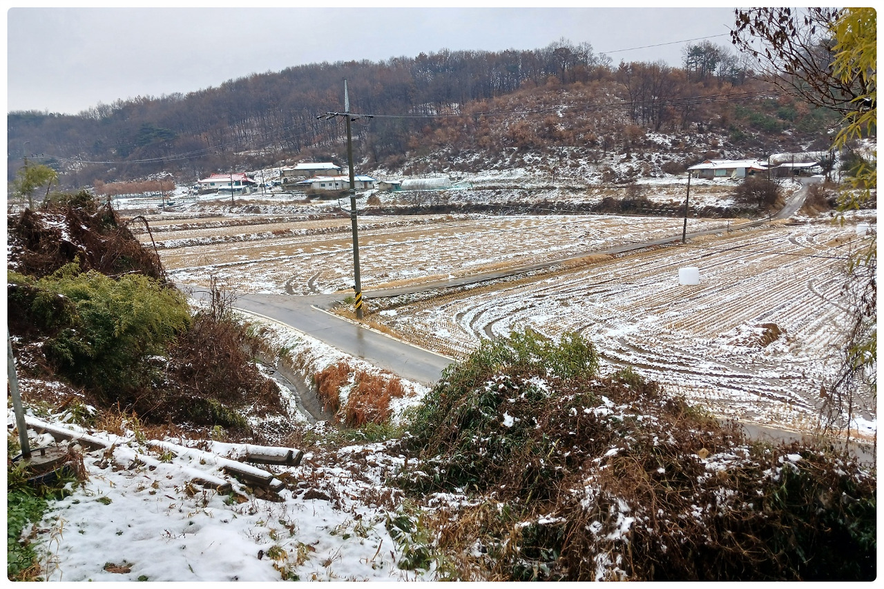 역(驛) 근처 도심에서 벗어나 길게 뻗은 도로를 따라 마을 길을 달리다 보면 여름에 그렇게 푸르던 논들은 지금은 추수를 끝내고 황량하고 쓸쓸한 텅 빈 공간으로 변하고 하늘 아래 구름 사이를 헤치며 밝게 비추는 따뜻한 햇볕이 차가운 공기를 만나 영롱한 아지랑이를 만들며 새 봄을 기약하고 있다.