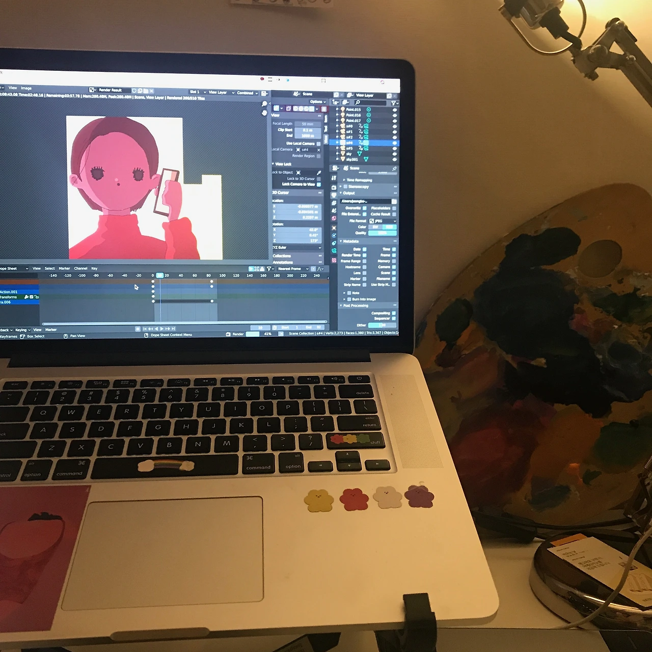 내 작업에서의 실제 촬영사진만의 공간감과 픽셀 이미지를 정말 사랑했지만, 여행하며 일하는 내가 원하는 삶의 방식을 선택했고, 나의 사랑 "사진"을 포기하고 아이패드와 맥북으로만 애니메이션을 제작하는 방식을 연구하고 짐을 싸들고 떠났다.