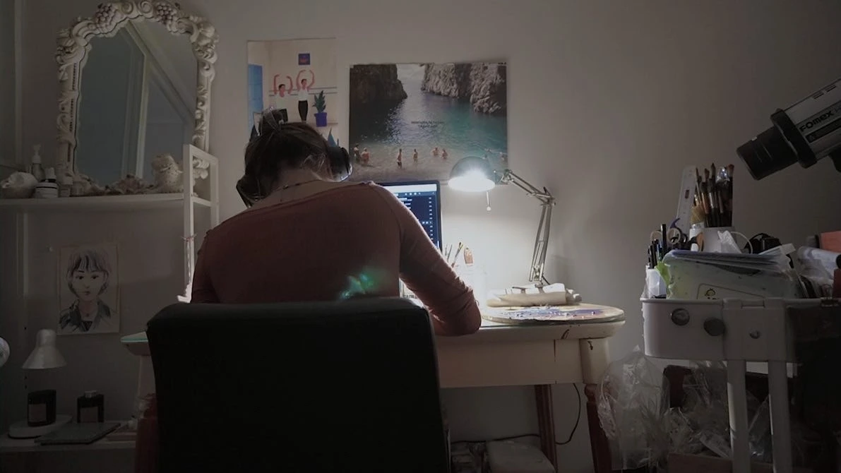 작은 방 안에 큰 책상을 놓고, 외주가 들어오면 매일 밤을 새며 수작업으로 촬영 세트를 만들고 페이퍼 프레임을 만들고 포맥스 조명을 켜서 카메라로 촬영했다.