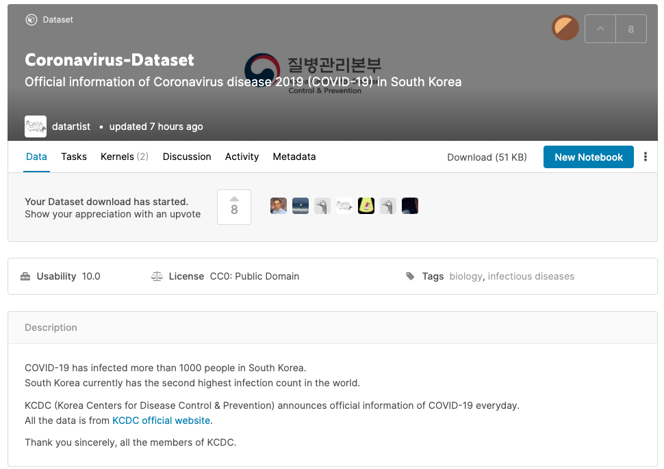 이상으로 질병관리본부에서 제공한 데이터를 기반으로 신종 코로나 바이러스의 현상태에 대해 알아보았다. 직접 데이터를 분석하며 의미를 생각하다 보니 잘 몰랐던 사실들에 대해 많이 알게 되었다. 이번 사태는 우리에게 시사하는 바가 크다.