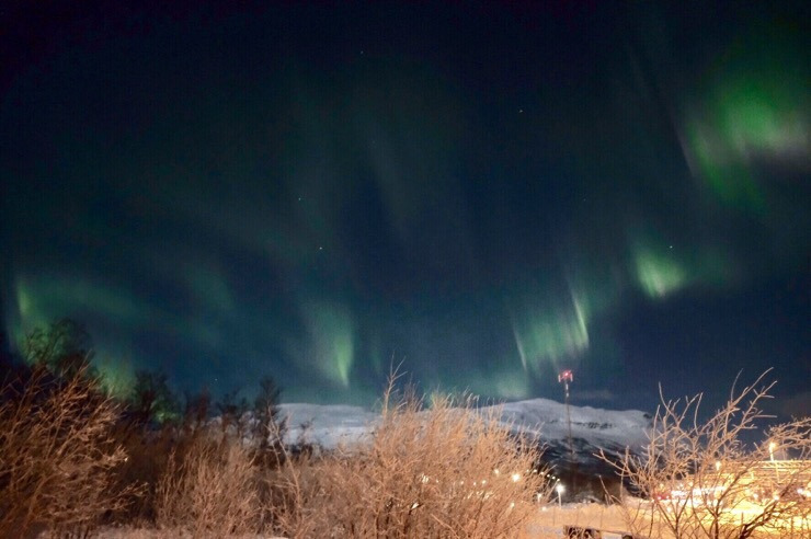 재빨리 방한복을 챙겨입고 카메라를 챙겨 호스텔 앞으로 나가니 머리 위로 오로라가 넘실넘실 춤을 추고 있었다.