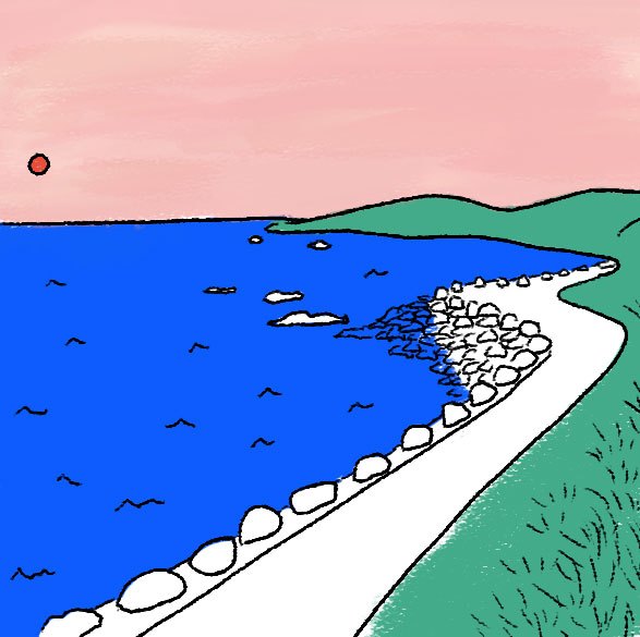 6월 말, 낚시꾼이 아닌 외부인은 나 혼자였다. 아무도 없는 섬을 한 바퀴 쭉 걷다 노을에 물든 바다를 보고서 하루가 끝났다. 다음날 밤에는 항구 쪽에 위치한 무인 카페에서 밤바다를 배경으로 책을 읽었다.