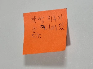 아이는 나에게 책상정리(책상 낙서 지우기)가 재미있었다며 쪽지를 건네주었다.