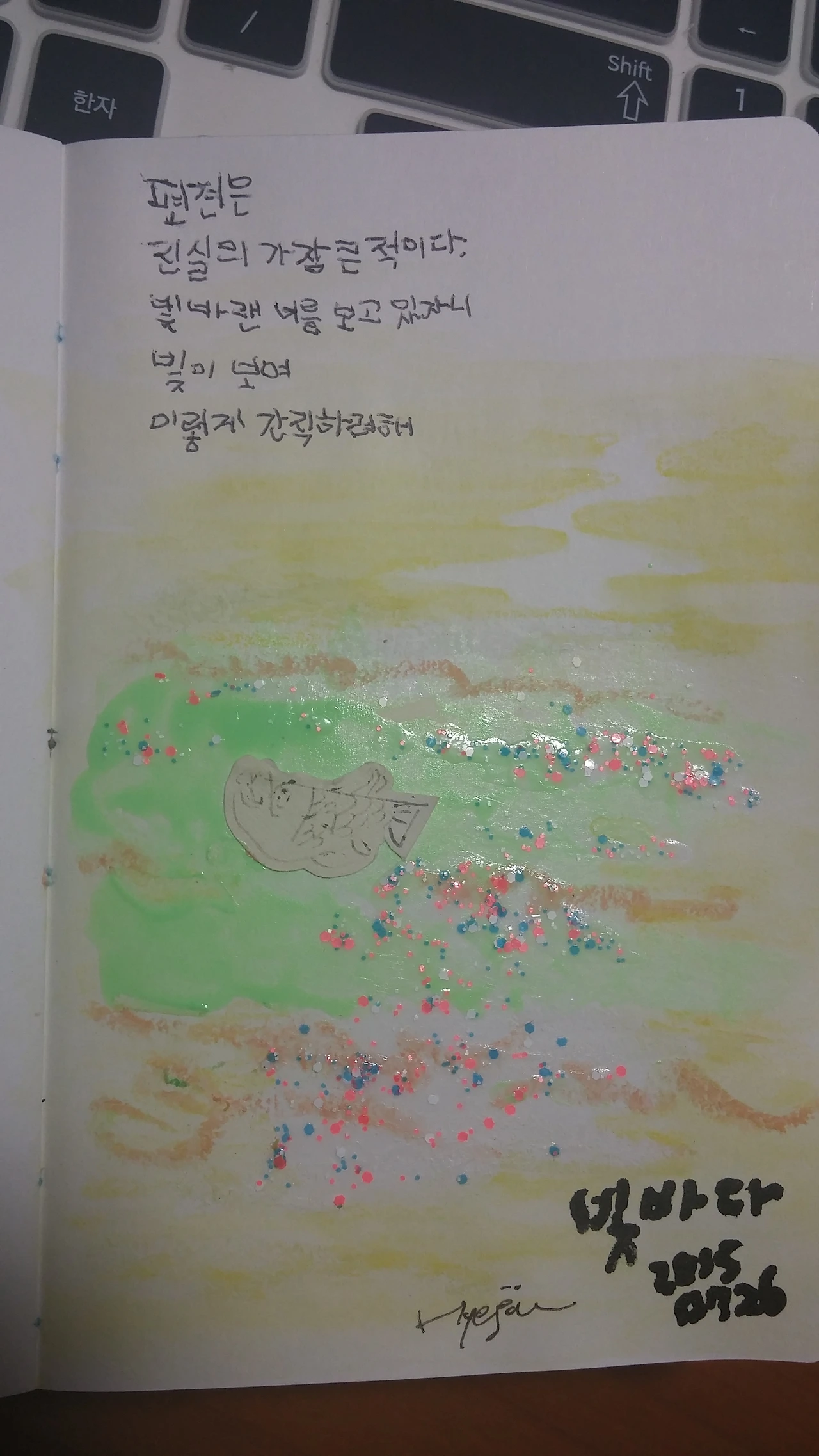 잘그려짐이 아닌 내 지금의 감정에 예술이란 불이 켜지면 한치의 망서림도 필요없이 주위에 있는 그 어느것으로도 좋으니 남기자