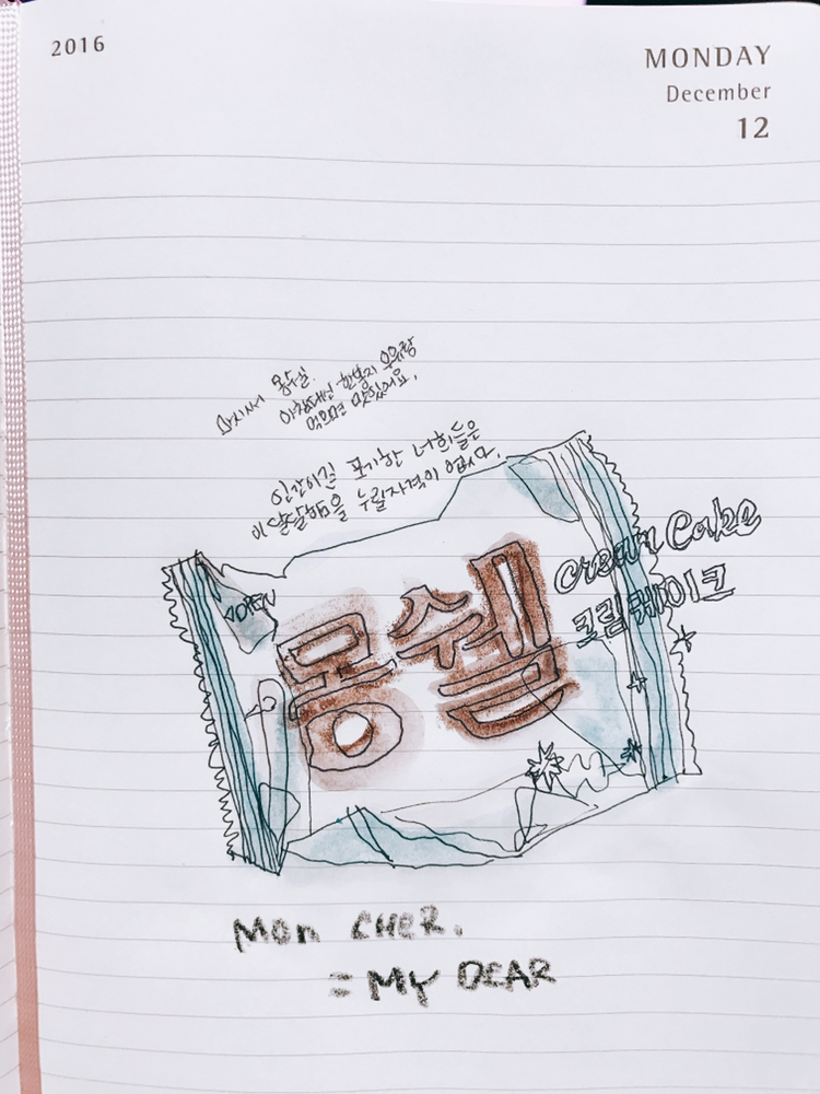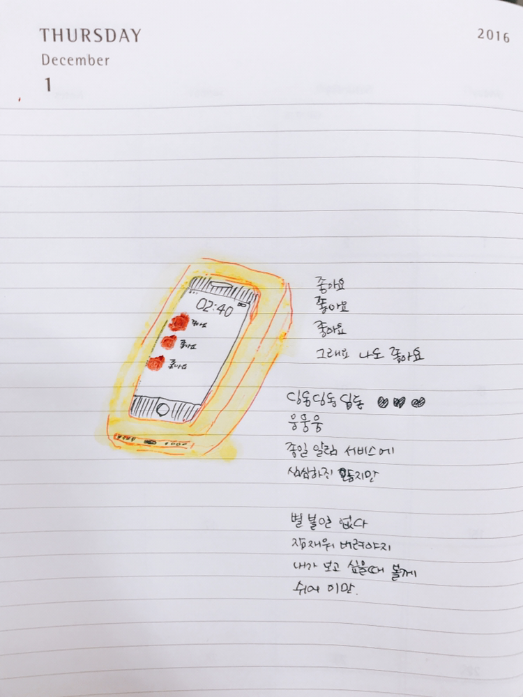 스타*스에서 연말 쯤 폭풍 스티커 모으기를 하여 다이어리를 받아들고 12월 1일 페이지를 시작으로 데일리드로잉을 시작했습니다