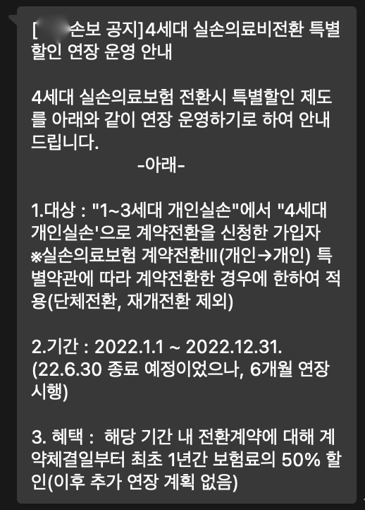 대상은 2022년 12월 말일까지 전환하는 실손특약 및 실손의료보험(실비보험) 입니다.
