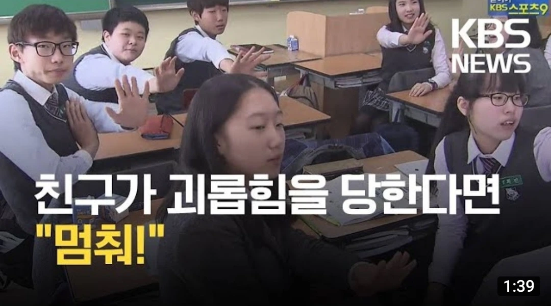 한때 피해 학생이 "멈춰!'를 외치면 주변의 친구들 모두 가해 학생을 향해 "멈춰!"를 외치는 방식으로 학교 폭력 문제를 해결하도록 하고 있는 학교의 사례가 뉴스에 보도된 적이 있다. 꽤나 화제성이 높았다. 일종의 밈이 되어 학생들끼리 장난칠 때도 종종 쓰이곤 했다. 그러나 그저 웃고 넘길 뿐 누구도 이 방식을 진지하게 받아들이지는 않았다. 터무니없는 방법처럼 보이고 말도 안 되는 방법이라는 여론이 대부분이었다.