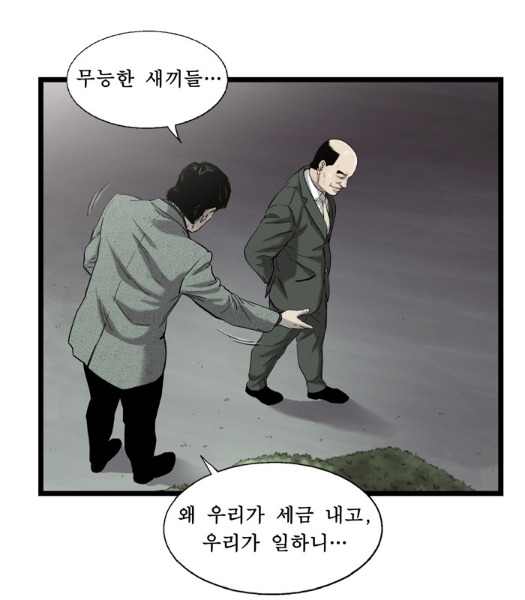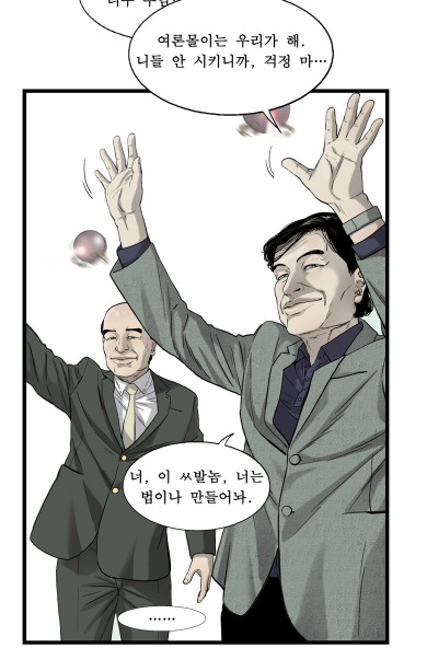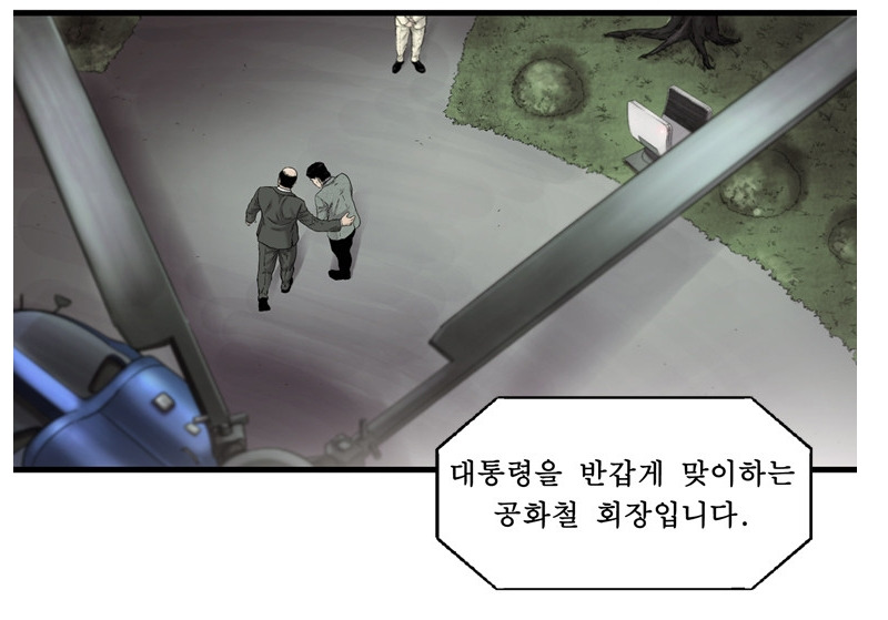 이 웹툰이 주목받게 된 이유는 시즌1의 끝 무렵에 등장한 대통령과 ‘실세’의 관계 때문이다. 웹툰 안에서 고결동의 공개 행사에 초대된 대통령은 겉보기에 재벌 회장의 정중한 에스코트를 받으며 행사장으로 들어가는 듯하다. 하지만 그들의 대화는 보이는 것과 다르다. 재벌은 대통령에게 육두문자를 날리고 “대본대로 똑바로 해라”며 살벌하게 대한다. 물론, 카메라를 비롯해 보는 눈이 많으니 얼굴엔 미소를 잃지 않는다. 대통령 역시 머리 숙이는 재벌 회장의 어깨를 툭툭 치며 편안한 표정을 짓는다. 그러나 재벌의 날 선 압박에 쩔쩔매며 난감해한다. 최고 권력자와 비선 실세의 상황을 극단적으로 묘사한 장면이라 생각했지만, 지금 현실에서 불거진 상황을 따져보면 웹툰 작가가 천리안이라도 가지고 있었던 게 아닌가 싶어 놀랍다.