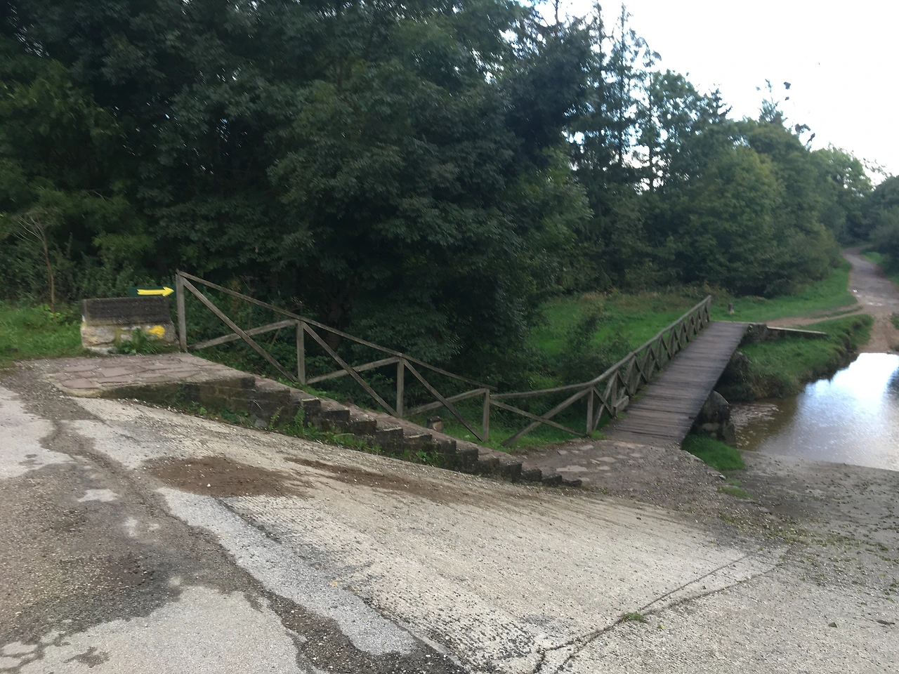 멀리 수비리가 보였다. 한참을 경사가 진 흙길로 내려오자 드디어 수비리에 입성! 마을로 들어가는 입구에 수비리 간판이 보였다. 해자처럼 놓인 중세 다리! 그 아래로 흐르는 물을 물끄러미 바라봤다. 건너편 숙소 마당은 냇가로 이어졌는지, 사람들이 웃통을 벗고 널브러져 있다. 널어놓은 빨래가 잔디에 휘날리고 있다. 이미 도착한 사람들의 한가로운 모습이 부러웠다. 겨우 도착한 마을, 숙소 찾는 일이 남았다. 코 앞에 있는 저 숙소가 내 숙소라면 얼마나 좋을까? 예약되지 않았다면 저 숙소로 갔으리라. 그런데 순례자들이 많은 걸 보니 이곳도 이미 풀로 차 버렸지 싶었다. 수비리에 방이 없다는 소식은 현지에서 더 여실히 전해졌다. 오면서도, 도착해서도 숙소를 못 잡은 순례자들을 길 위에서 만났다.