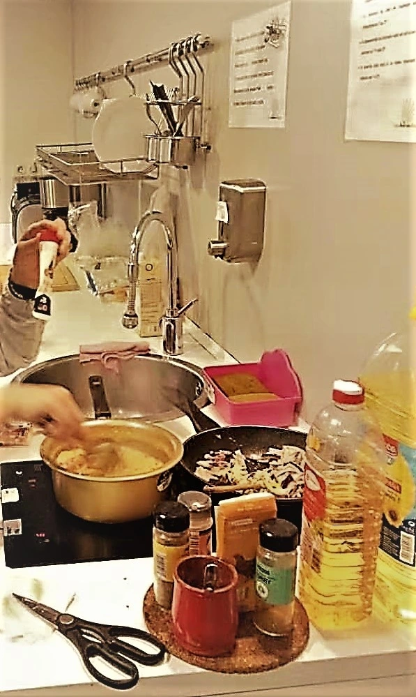 신나게 요리를 했다. 뒤치다꺼리는 대만 친구 세미가 다했다. 사람들이 식사를 다 끝낸 터라, 그냥 모아서 설거지를 해도 될 것 같은데, 내가 만드는 과정 중간중간, 바로바로 씻어놓는 센스를 보였다. 사실 많은 사람들이 식사 준비를 할 때는 쓰는 대로 씻어 놓는 게 맞다. 그때마다 식기가 필요한 사람을 위한 배려로! 한 서양 남자가 기웃거리길래 맛을 보여주었다. 만족스럽게 고개를 끄덕였지만, 이미 자기 앞에 놓인 피자인지, 큰 빵인지를 해결해야 할 것 같았다. 세미와 나는 늦은 저녁 식사를 했다.
