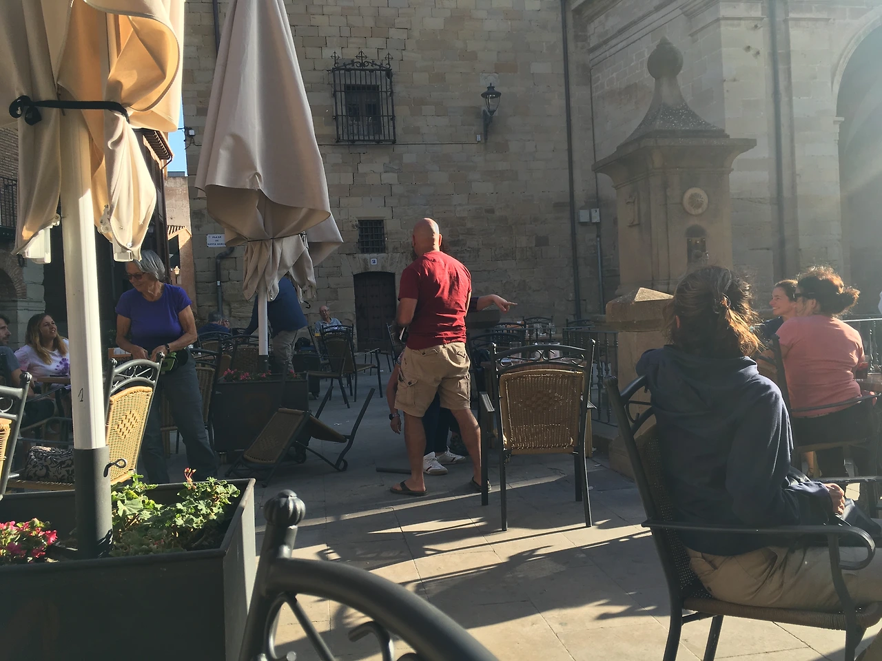 성당 앞에 카페 광장이 있었다. 오후 그늘진 자리부터 사람들이 차지하고 앉아있었다. 말로만 듣던 타파스를 시켜봤다. 새우에 버섯에 버터 바른 바게트! 꼬치에 꽂아 나온 타파스는 정말 맛있었다. 이 지역이 타파스로 유명한 줄 나중에 알았다. 더불어 로그로뇨에 가면 끝내주는 타파스가 많다는 말들을 했다. 일정표대로 하면 내일 도착할 곳이지만, 20킬로도 버거운 우리에게 내일 일정은 28킬로! 보통 사람들도 무리해서 가야 하는 거리였다. 우리는 고민 없이 중간 마을에서 하루 쉬자고 했다. 내일부터 삼 일간 계속 28킬로 걷게 되어 있었다. 더러는 이제 익숙해져서 20킬로 걷던 사람들도 30킬로씩 걸어도 될 거라는데, 아직은 무리라는 사람들도 많았다. 이건 일반 사람, 보통 걸음을 걷는 사람들 얘기다. 나나 세미처럼 달팽이 류들은 애초에 이 거리만큼 하루에 간다는 건 말도 안 되는 얘기였다. 여기서부터 사람들이 서로 만날 수도 있고, 못 만날 수도 있는 기이한 운명에 처하는 게 되는 건 아닌가 싶었다.