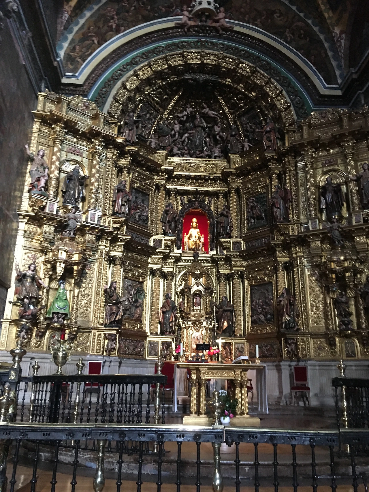 성당의 내부를 장식한 벽화들은 부르고스 출신의 끄리스또발 곤살레스의 작품인데, 꼬르도바 가죽 가공을 차용하여 나무와 은 위에 벽화를 그렸다. 1561년에 만들어진 바로크 장식이 아름다운 합창대의 각석과 그 아래에 만들어진 고딕 양식의 회랑은 저녁 미사를 마친 순례자에게 무한한 감동을 선사한다.