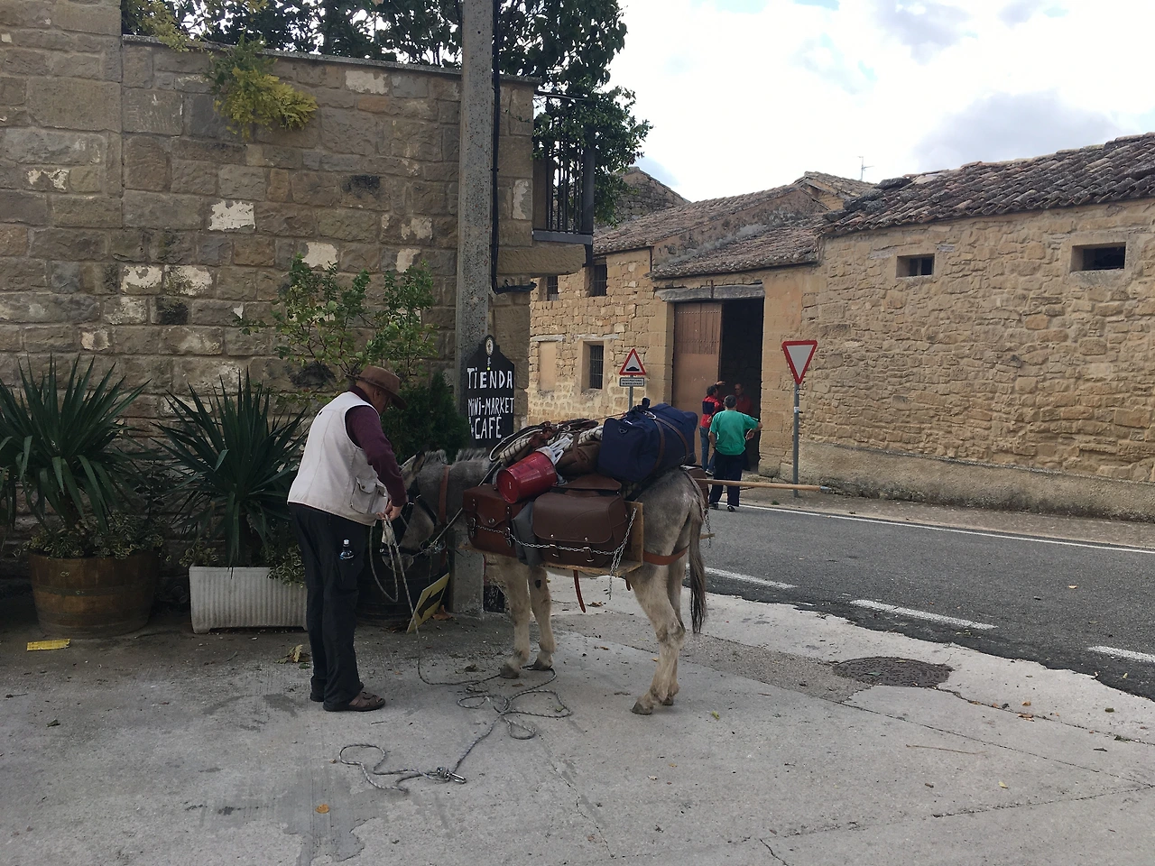 다들 멍하니 앉아 기계적으로 간식을 입에 넣고 있을 뿐 별다른 말을 하지 않았다. 서로 말 시키지 않는 게 도와주는 분위기! 그늘 속 청량함으로 저절로 힐링이 된다. 그런데 이게 뭔고? 당나귀가 한 마리 우리 앞에 섰다. 엥? 어제 그 녀석이다. 주인장도 같다. 이 마을에서 사는 녀석이었나 싶었다. 여기가 집이냐고 물으니, 그들도 우리처럼 계속 가는 중이란다. 영어를 잘 못하는 주인장과 많은 말은 할 수 없었지만, 어제 우리가 생각했던 슬픈 운명의 당나귀는 아닌 듯 반지르르한 모습이었다. 왠지 마음이 놓였다. 짐만 조금 줄이면 좋겠는데! 이유를 몰라 답답하지만 주인장의 당나귀 사랑이 충분히 느껴졌다.