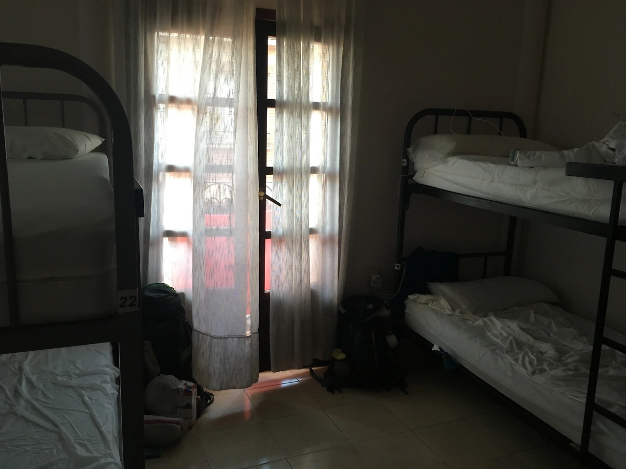 어쩌다 보니, 세미와 나는 화장실을 드나드는 사람들을 '눈 스캔'으로 검문하게 됐다. 사방 벽 쪽으로 쭉 둘러쳐진 2층 침대, 그리고 아까 내 침대가 될 뻔한 가운데 놓인 2층 침대들, 2층 침대는 오르내리기는 좀 귀찮았지만 한가하긴 했다. 내 아래층 침대는 여태 비어있더니, 프랑스 청년 하나가 차지했다. 키가 껑충하게 커서 2층에서도 불편함 없이 대화가 가능했다. 여하튼 2층에서도 그의 큰 키는 돋보였다. 그는 짐을 대충 바닥에 던져두고 침대에 구겨져 있었다. 길이가 커서 침대가 작아 보였다.
