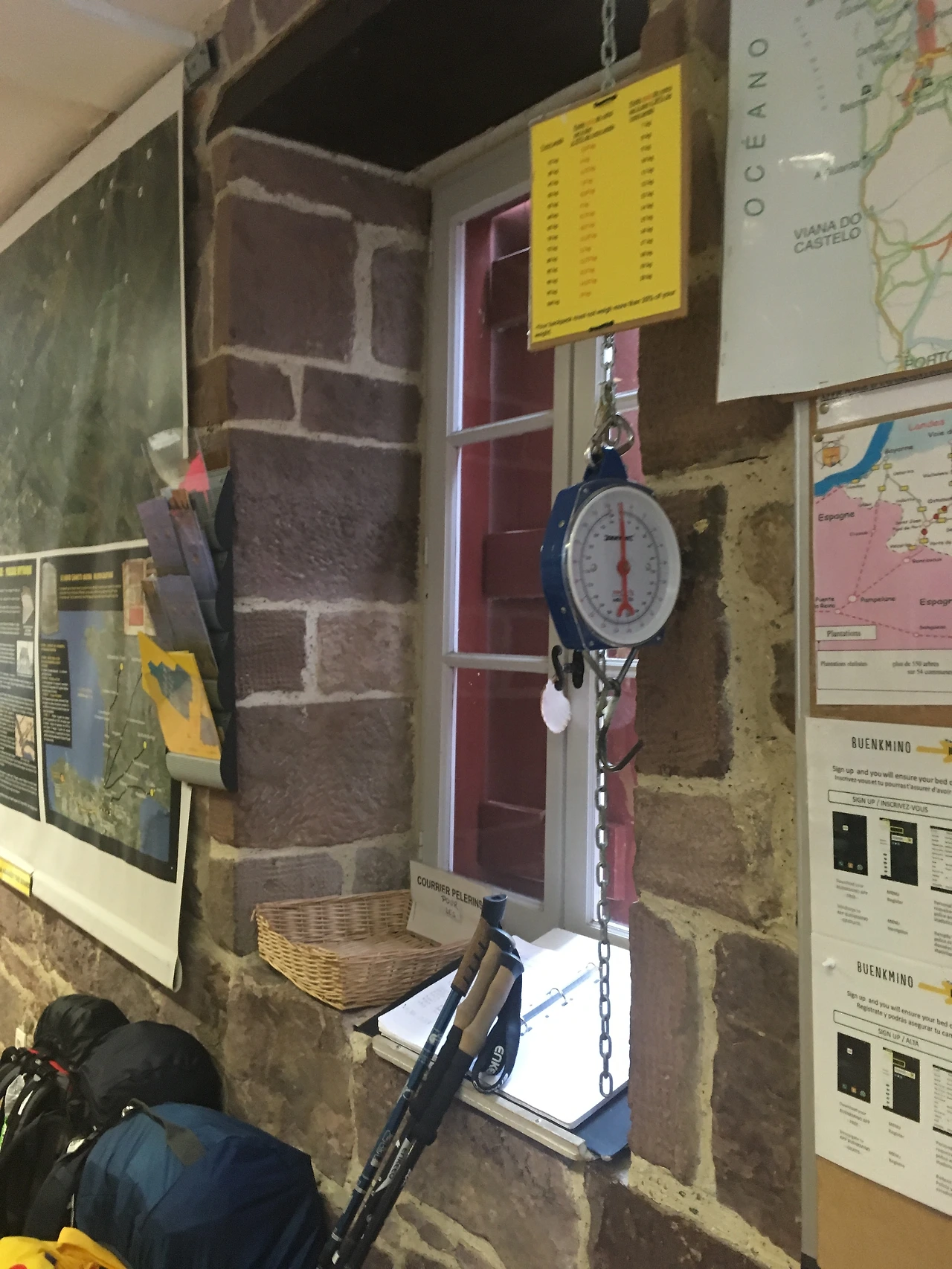 생장은 한 눈에도 조용하고 평화로운 마을이다. 조금 걸어서 순례자 사무소에 도착했다. 사람들이 많지 않았다. 역시 비수기는 비수기인가 보다. 차례로 줄을 서서 기다리는 동안 크게 붙어있는 순례길 지도가 보였다. 아직 첫걸음도 못 뗀 아기가 저게 무엇을 뜻하는지, 어디 다 헤어릴 수 있으랴. 그저 실핏줄처럼 길게 이어진 그림일 뿐, 체감되지 않는 표식이다. 순례자 여권과 구간별 코스 표, 알베르게 정보를 받았다. 2유로에 가리비까지 총 4유로를 냈다.