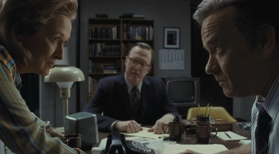 두 가지 부정으로 시작하자. 스티븐 스필버그의 근작 <더 포스트>는 세간에서 말하는 여성 임파워링 영화도, 고전적으로 '품격있는' 내러티브의 영화도 아니다. 적어도 그것을 핵심적 목표로 두어 스스로를 거기에 위치시키려 하고 있지 않다. 만약 당신이 이 두 가지를 기대하고 극장에 들어갔다면 당신은 실망할 터이며, 혹여라도 그 기대가 충족되었다면 당신은 <더 포스트>를 오독한 것이다. 물론 이런 류의 감상으로 당신을 유혹할 만한 숏이나 씬이 여럿 있긴 하나, "이런 류의 감상"은 영화의 요소들을 (극의 맥락 안에 위치시켜 바라보는 단계를 지나치고) 성급하게 전체로 등치시켜버리는 경박한 반영론적 태도에 불과하다. 애초에 백인 부르주아 여성의 반'체제' -그것이 정부든 남성중심의 업계든- 적 성취만이 있다면, 물 흐르듯 자연스럽고 자극적이지 않은 극적 상황만이 있다면 대체 그 영화를 무엇으로 긍정하고 지지할 수 있단 말인가? 예컨대 임파워링에 초점을 맞춘다면, 이 경우 영화는 리버럴적인 논리를 답습하는, 지독하게 반동적인 작품이 될 수 있을 것이다. 실로 우리 앞에는 재능에의 인정 욕구로 귀결되는 <히든 피겨스>의 나이브함이나, 젠더 역전의 도식 만으로 진보를 이루었다 자만하는 <미스 슬로운>의 냉소주의가 있지 않은가. 자본이 소수자의 저항마저 '개성적인' 재생산의 기제로 끌어들이며 약동하고 있는 것에 우리는 보다 민감해지지 않으면 안 된다. 그러나 나는 <더 포스트>가 "여성 임파워링 영화도, 고전적으로 '품격있는' 내러티브의 영화도 아니다"라고 말했다. 그렇다면 <더 포스트>는 무엇을 하려는 영화인가?