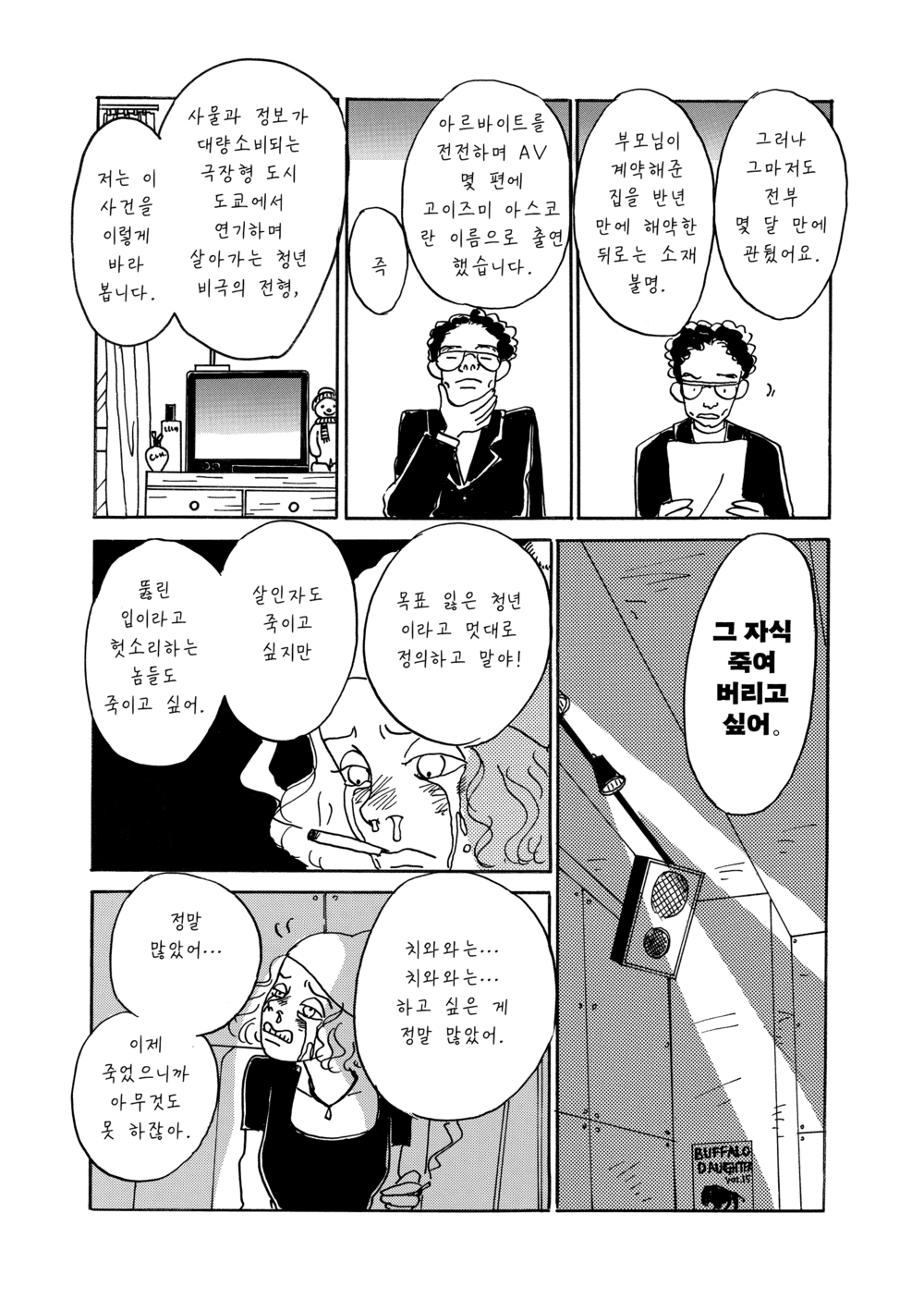 요컨대 오카자키 쿄코의 만화는 (도덕의 구축 자체는 존중하면서도) 도덕이 세상을 대하는 태도의 전부가 되려는 것에 대한 나름의 저항으로서 숭고한 (그리고 그만큼 황당무계한) ‘조작’이다. 도덕이 결코 충분히 이해하고 포괄할 수 없는 삶의 방식이 있다고, 혹은 도덕 바깥에서도 삶은 여러 갈래로 계속되고 있다고 반론을 제기하기. 스탠리 카벨이 ‘시민적 삶(civic life)에의 항체’라 불렀던 일, 더 거창하게 말하자면 변증법의 세속적 갱신을 위한 사투랄까? (혹은 들뢰즈라면 변증법에 대한 세속적인 저항이라 불렀을 지도 모르겠다)