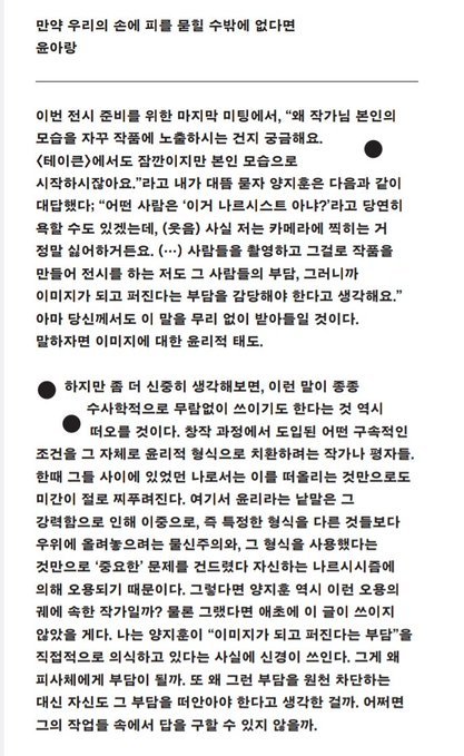 올해 <포수>로 DMZ영화제 한국경쟁 단편 대상을 수상하기도 했던 양지훈 작가가 상업화랑 을지로에서 영상 작업 3편과 함께 첫 개인전 <다르게 총 쏘기>를 개최했(으며 12월 31일까지 계속된)다. 나는 그의 사진 작업들까지 염두에 둔 작가론 성격의 짧은 비평 「만약 우리의 손에 피를 묻힐 수밖에 없다면」으로 여기에 참여했다. 물론 이번 전시에 설치된 작업들이 걸작이라 할 생각은 없지만, 그의 작업들이 '불순한' 역사서술의 미래를 충분히 기대하게끔 만든다는 것은 힘주어 얘기하고 싶다.