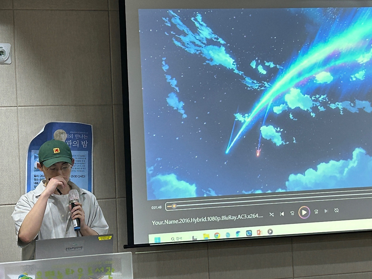 은평뉴타운도서관에서 신카이 마코토의 대표작(이 되어버린) <너의 이름은.>에 대한 특강을 진행했다. 원래 도서관 측과 얘기를 나눈 건 어떤 주제에 대한 연속 강좌였는데, 사정이 여의치 않게 되자 '시의성 있는' 특강으로 급히 계획을 틀었다. 당시 신카이의 근작 <스즈메의 문단속>의 국내 관객수가 400만 명을 막 넘어선 차였고, 또한 개인적으로 지난 2016년 이래 그를 '거장'이라기보단 '이상한 작가'로서 계속 신경 쓰며 이에 대한 얘기를 충분히 털어놓을 기회를 노리고 있었기 때문에, 우리는 <너의 이름은.>을 주제로 삼았다.