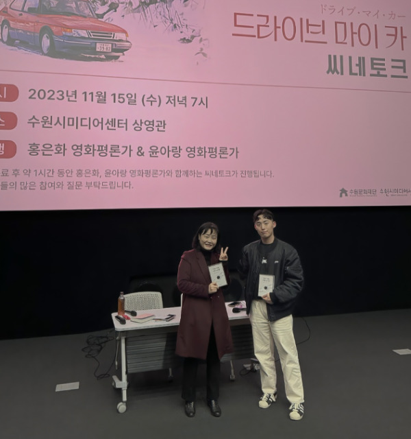 수원시미디어센터에서 기획한 하마구치 류스케 감독전에서 (마지막 날의 마지막 상영이었던) <드라이브 마이 카> 상영 직후 (팟캐스트 카페크리틱의 리더이기도 하신) 홍은화 평론가와 함께 시네토크를 진행했다. 시간 관계상 이 영화에서 가장 중요하다 생각된 세 가지 장면에 대해 우리 둘이 만담 스타일로 대화를 나누었는데, 질문 시간에 관객들이 매우 열성적으로 참여해 준 덕분에 적잖이 치열한 자리가 되었다. 어떤 관객분은 시네토크가 끝난 이후 센터장님께 "내가 이런 걸 공짜로 들어도 되는 건가 몰라"라고 말했다는데, 그날의 모든 고생이 녹아 사라지는 듯이 감동적이었다.