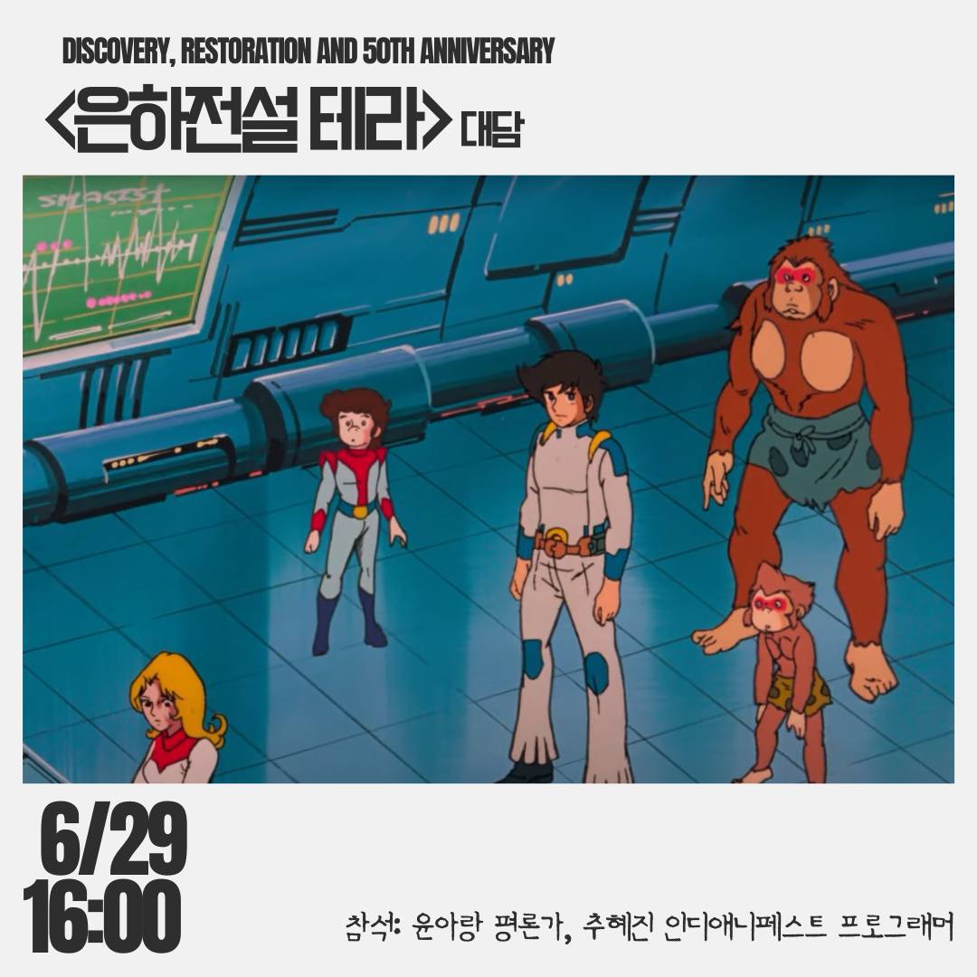 <발굴, 복원 그리고 KOFA 50주년 Part 1> 기획전의 일환으로 <은하전설 테라> 상영 후 추혜진 인디애니페스트 프로그래머님과 대담을 진행했다. 이 작품은 보통 '표절과 낮은 퀄리티로 가득 찬 가난한 20세기 한국 애니메이션에서 독자적인 가능성을 보여준 몇 안 되는 작품' 정도로 알려져 있으나, 여기서 나는 이와 좀 많이 다른 맵핑을 제시했다. 독자적인 한국 애니메이션을 만들고자 한 그 의지로 인해 오히려 한국 애니메이션이 일본 애니메이션을 닮아갔다면? 달리 말해 독립의 의지가 '선진문물'의 성격을 사후적으로 바꾼 것이라면? 사정상 이 얘기를 현장에서 길게 풀어놓지는 못했으나, 추 프로그래머님의 매끄러운 진행 그리고 대담에 함께 해주신 관객분들의 열띤 반응 덕분에 충분히 즐거운 자리가 되었던 것 같다.
