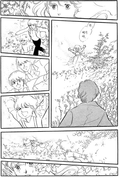 이번엔 약간 짧게 얘기해보겠습니다. 여러분은 하기오 모토의 만화에서 캐릭터들이 한 칸 안에서 서로 눈을 마주하고 대화하는 장면을 얼마나 보셨나요? 물론 많이 있습니다. <꽃과 빛 속>에도 <가여운 엄마>에도 <가을 여행>에도요. 그런데 저는 처음에 이런 순간들이 너무 불편하게 느껴지곤 했거든요. 물론 이 작품들은 제각각의 방식으로 아주 불편하고 잔혹하긴 한데, 그것만으론 설명되지 않는 무언가가 더 있다고 느꼈었어요. 왜 그럴까 하고 몇 번씩 다시 읽다보니까, 저는 이런 결론에 이르렀습니다. 하기오 모토의 캐릭터들이 하나의 칸에서 서로의 눈을 마주치는 일은 대부분 아주 외설적인 상황을 내포한다고 말이에요.