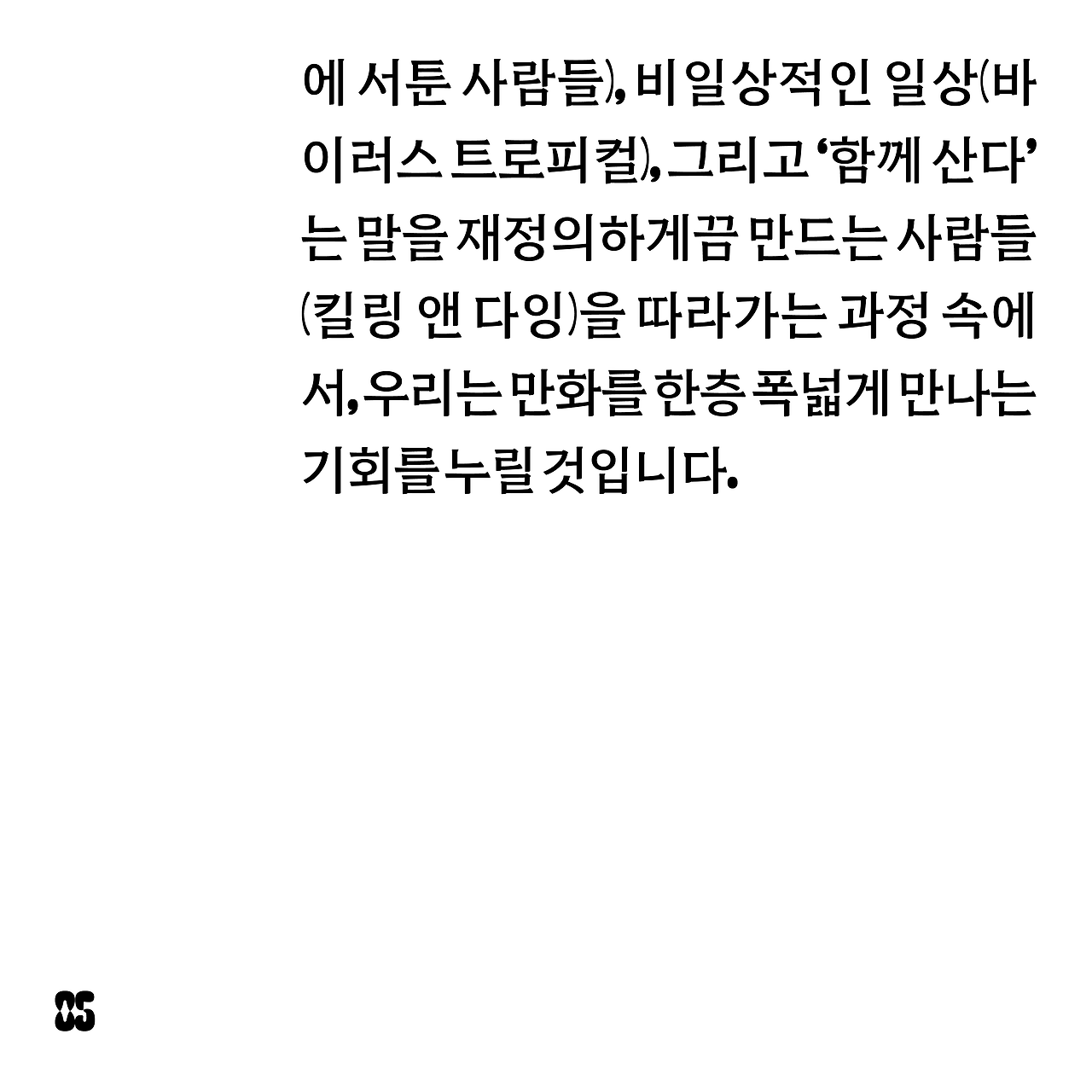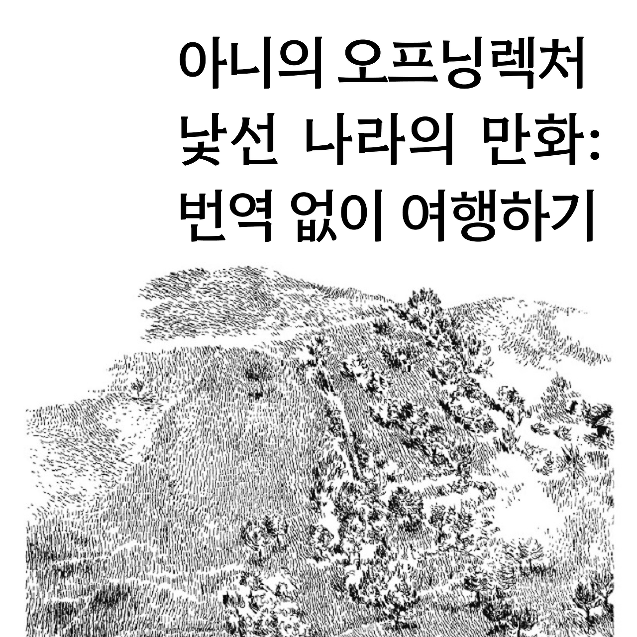 한국에서 만화를 얘기한다고 할 때, 여기서의 ‘만화’는 크게 두 가지를 지칭합니다. 하나는 한국 만화고, 다른 하나는 일본 만화죠. 물론 이 만화들 역시 몹시 넓고 복잡한 저변을 갖고 있고, 그만큼 많은 대화를 필요로 합니다. 그러나 과연 그것 만으로 괜찮은 걸까요? 한국 만화와 일본 만화 바깥에도 분명 흥미진진한 세계가 있지 않을까요. 또 그 바깥 역시 넓고 복잡한 저변을 갖고 있지 않을까요.