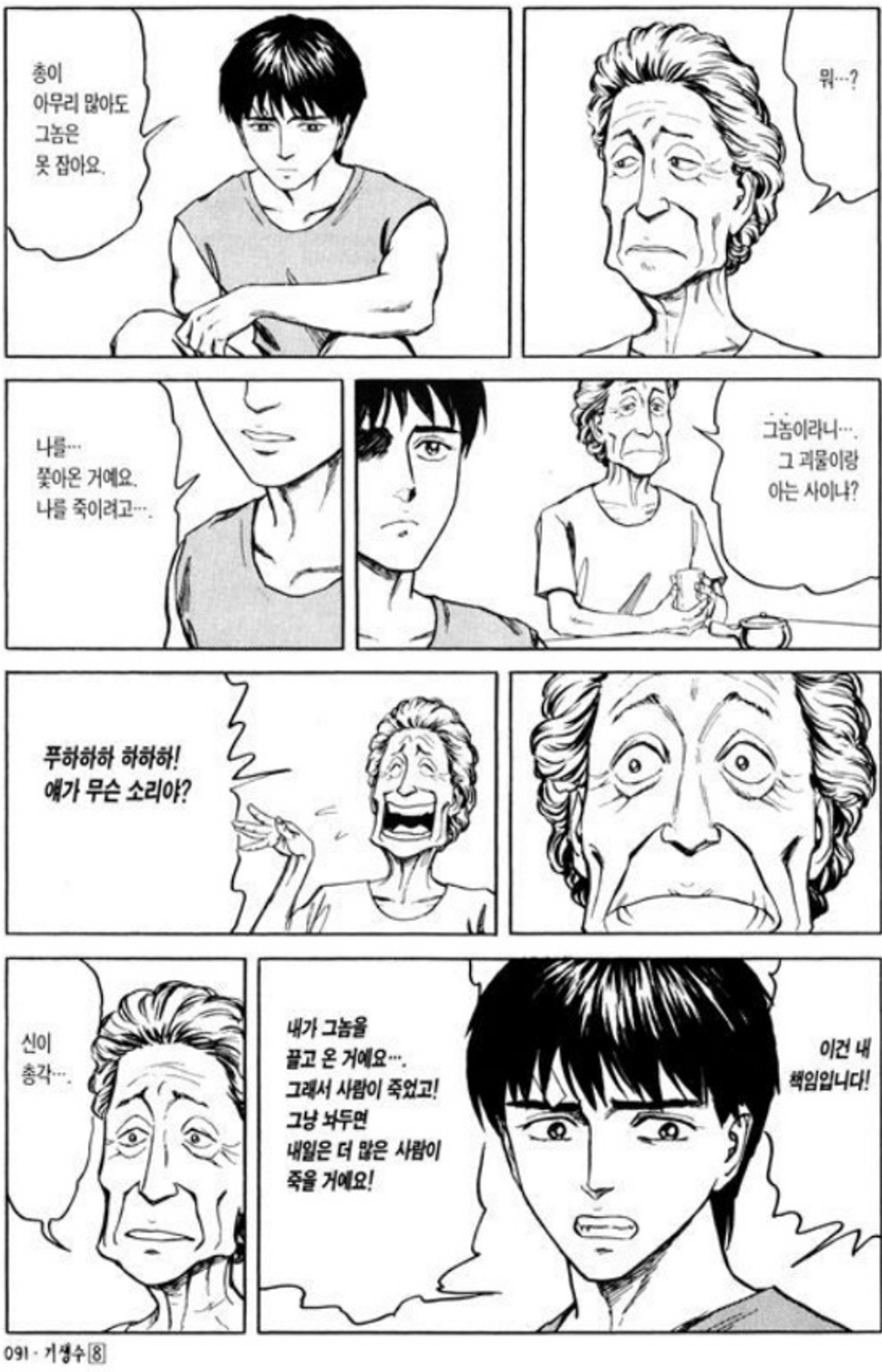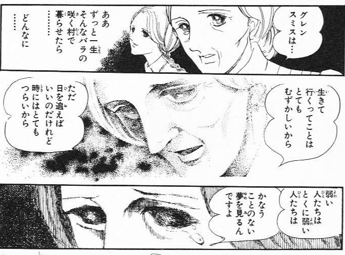 하기오가 굳이 이렇게 만들기도 읽기도 어려운 연출을 여기서 한 것은, 어쩌면 시간의 이러한 잔혹함을 형식의 층위에서 육화해보기 위해서가 아니었을까요? 흔히 쓰이는 비평적 수사대로 '내용과 형식의 일치'를 철저하게 추구하기 위해 말입니다. 또 이런 생각도 듭니다. 하기오 모토는 뱀파이어 만화를 그리고 싶었던 게 아니라, 뱀파이어 설정에 따라오는 시간의 잔혹함을 만화로 구현하고 싶었던 거라고 말이예요.
