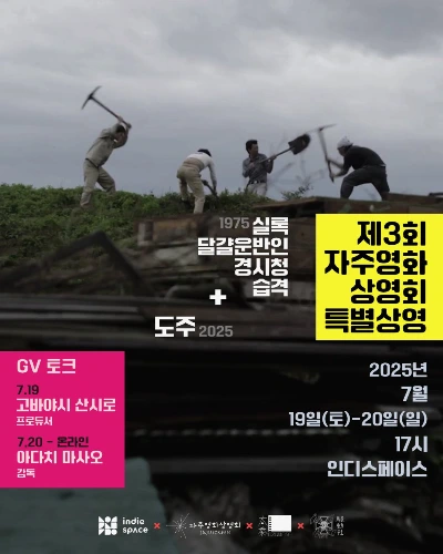자주영화상영회에서 일본의 영화 제작 및 배급사인 우즈마사와 공동주최로 인디스페이스에서 히지카타 테무진의 1975년작 <실록 달걀 운반인 경시청 습격>과 아다치 마사오의 2025년작 <도주>(2025년)를 이틀에 걸쳐 동시상영하는 기획을 꾸렸다. "1970년대를 살았던 한 젊은이를 다룬다는 공통점"에 따라 두 영화를 함께 묶었다고 하는데, 나는 이 기획을 위해 <도주>를 구심점 삼은 아다치 마사오 작가론을 요청 받아 「아다치의 대면」이라는 제목의 짧은 글을 썼다. 여기서 나는 아다치의 영화에서 '대면'의 제스쳐가 기이하고 강렬한 모티프로 활용되어왔음을 지적하며, 이것이 <도주>를 비롯한 (아다치의 일본 송환 이후 제작된) 21세기의 영화들에선 어떻게 변화했는지를 간단히 논해보았다. 어떤 사정이 있는지 아직 글이 아직 공개되지 않았는데, 아마 차후에 자주영화상영회의 사이트에 공개될 것 같다.