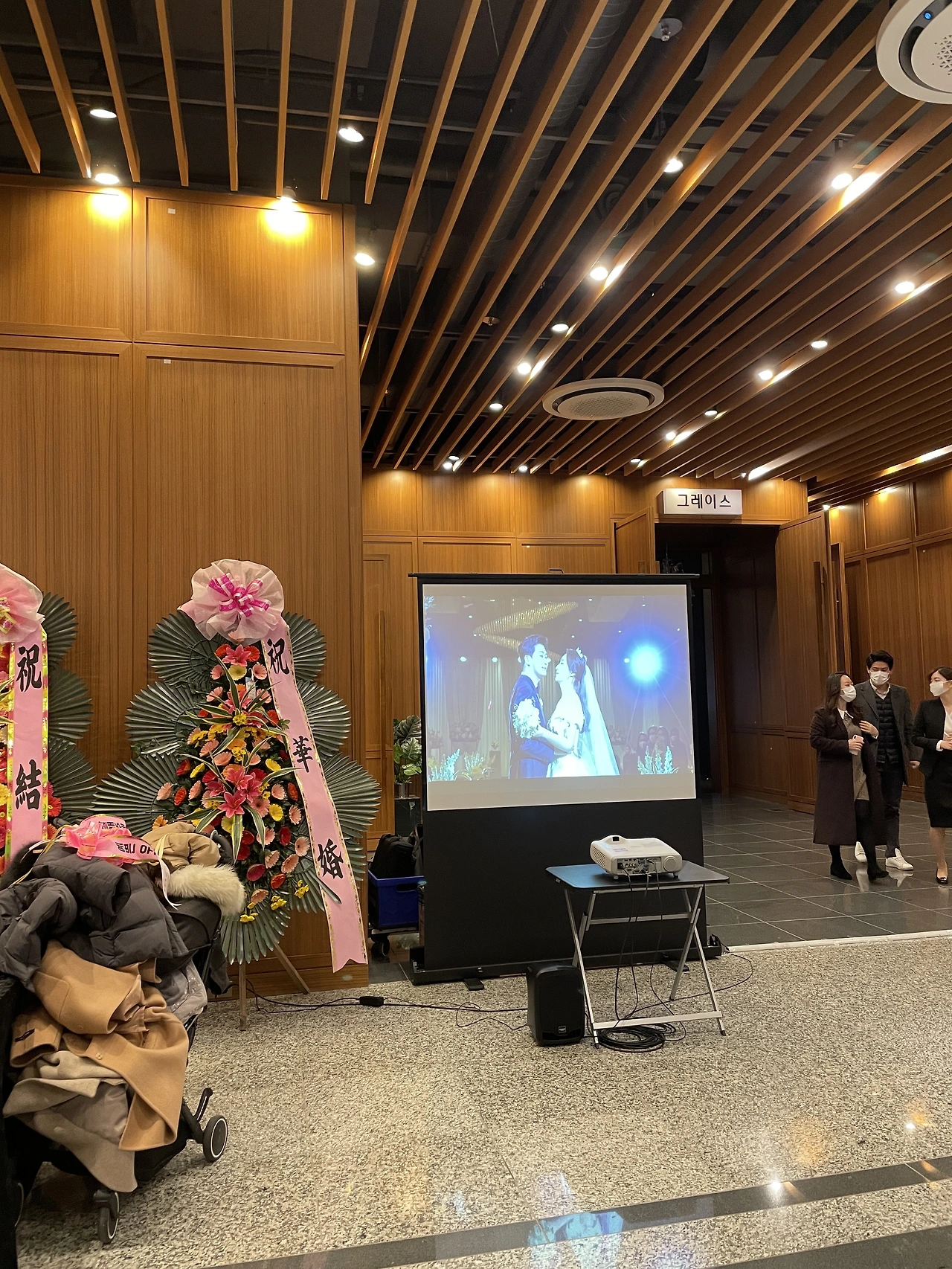 식장에 도착해 가장 먼저 마주한 것은 바로 복도에 있는 빔프로젝트이다.