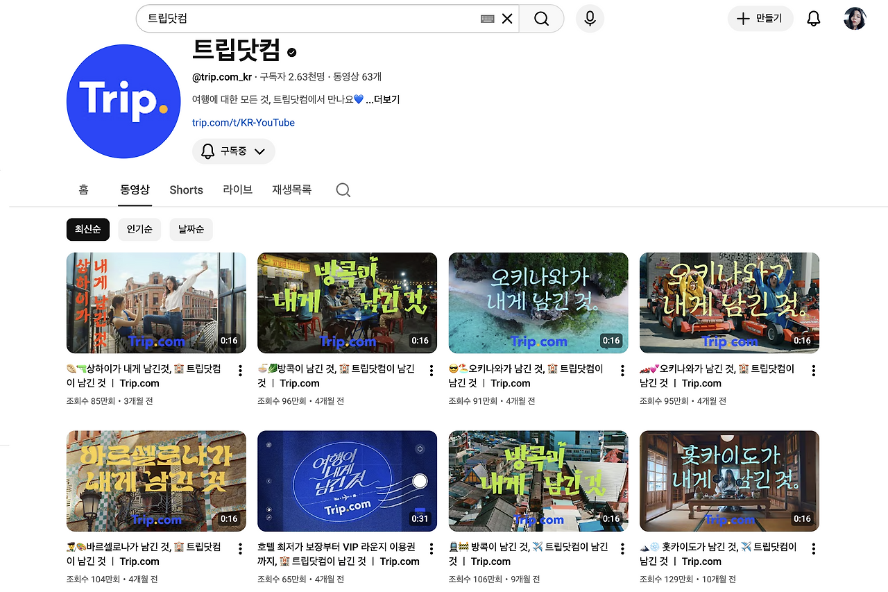 https://www.youtube.com/@trip.com_kr/videos