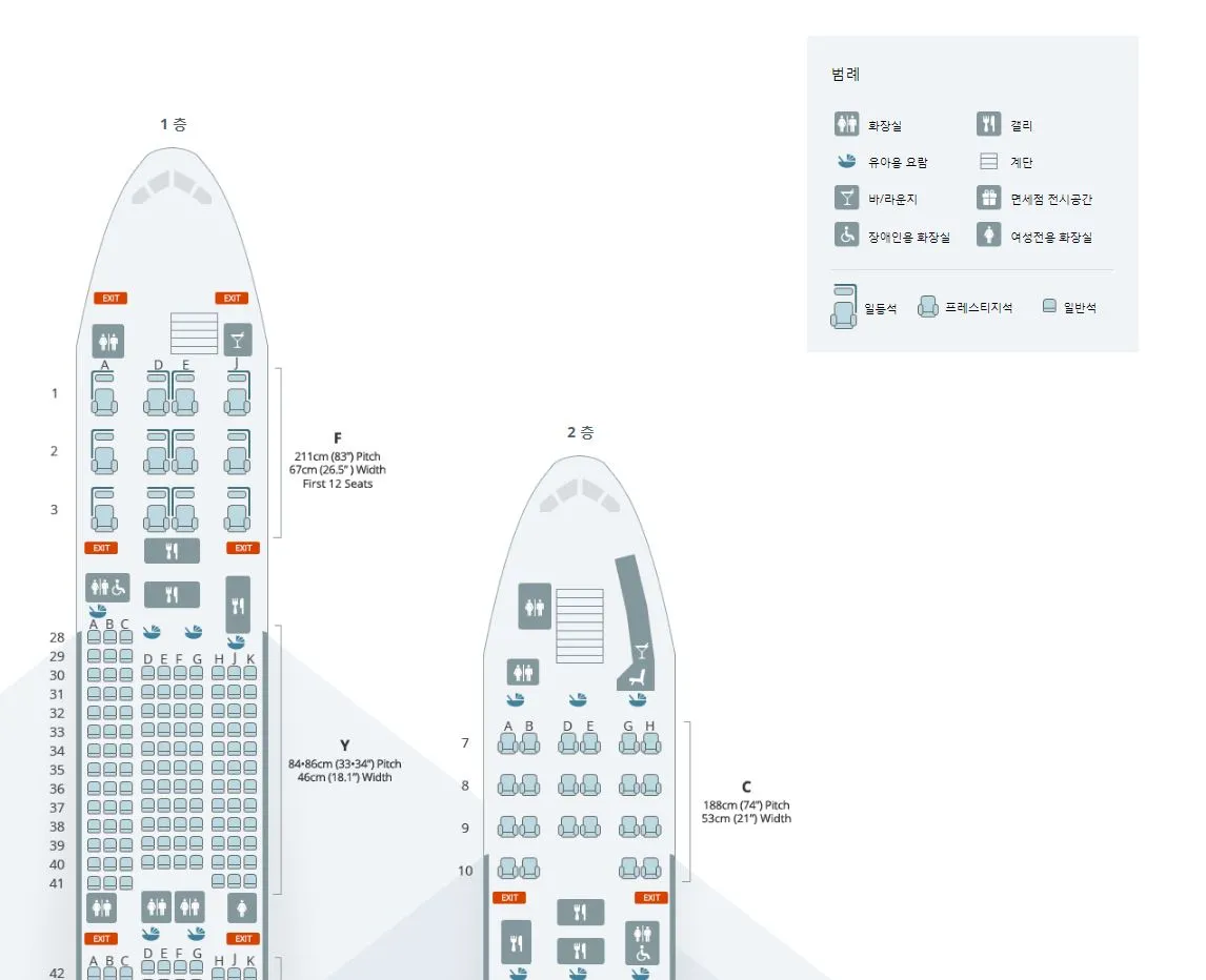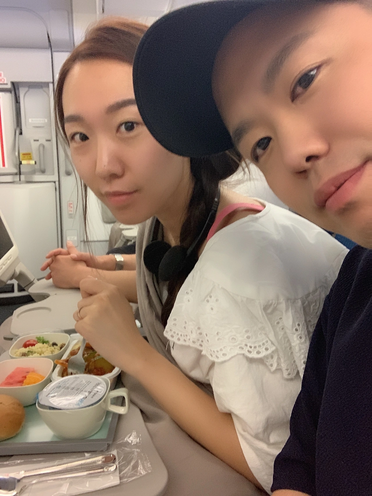 대한항공 라운지는 빵 종류와 라면, 와인 다양하게 즐길 수 있으며 대한항공은 2 터미널에서 탑승해서 오픈한 지 얼마 안돼 매우 깔끔한 환경에서 식사를 할 수 있었다. 대한항공 기내식은 이륙하고 2시간 정도 있다가 한번, 착륙하기 2시간 전에 한번 총 2회가 나왔다. KE0909편으로 시간대가 점심에 출발해서 파리 시각 오후 18시경 도착하는 일정이라 시차적 응이 조금 힘들 수도 있지만 출발 시간이 매우 좋은 편이었다. 기종은 에어버스 380-800 기종으로 역시 대형기종답게 1층은 퍼스트석, 이코 코 미석 , 2층은 비즈니스석이며 좌석수는 총 407석이다.