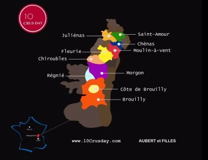 Saint-Amour, Julienas, Chenas, Moulin-a-Vent, Fleurie, Chiroubles, Morgon, Regnie, Cote de Brouilly, Brouilly