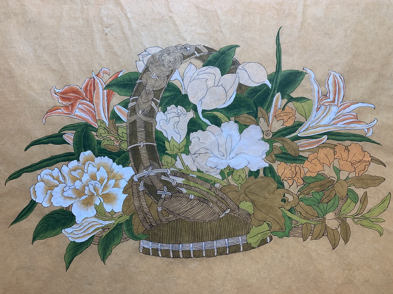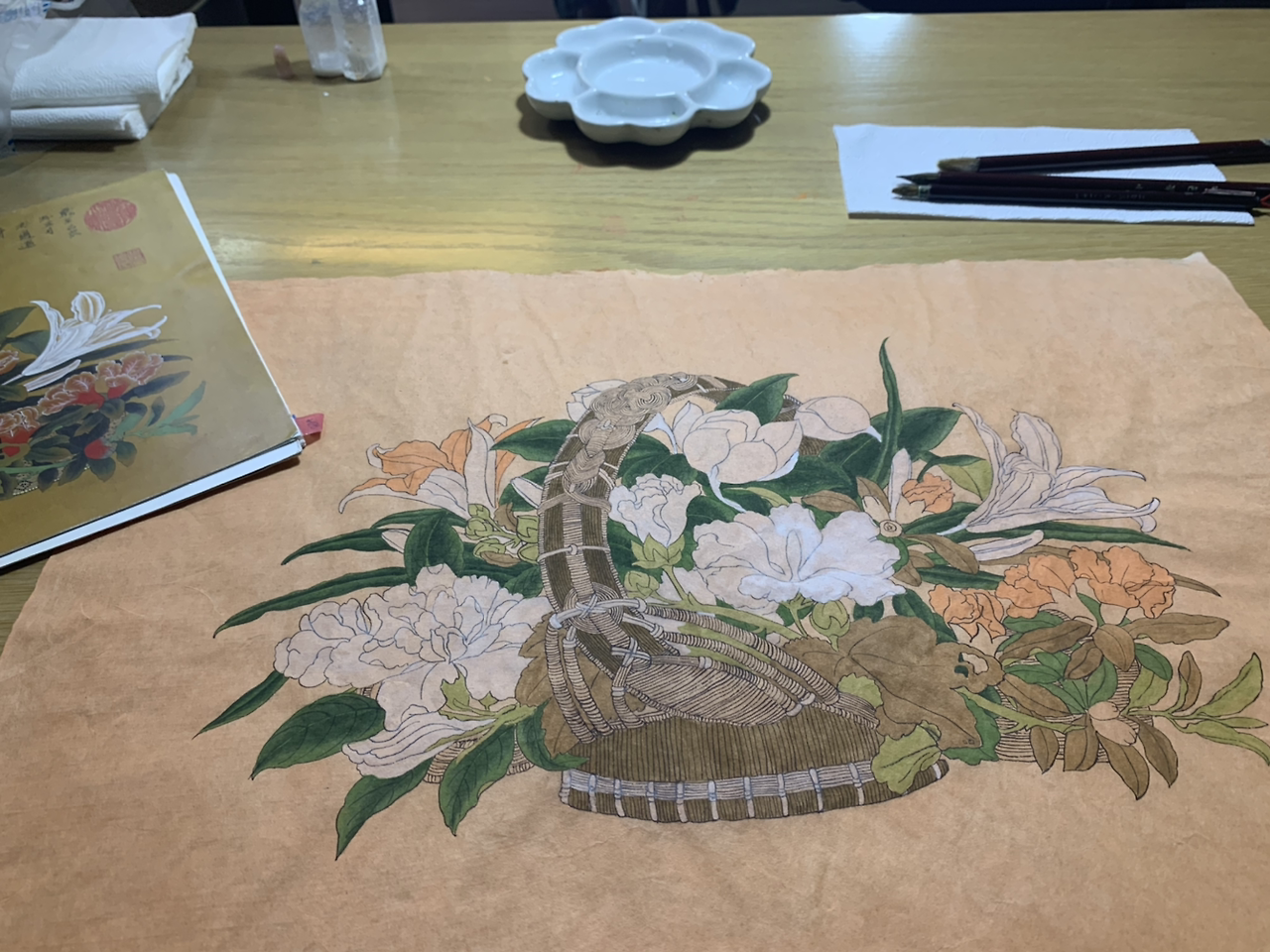 꽃 3송이를 채색했은데 수업시간이 끝났다.