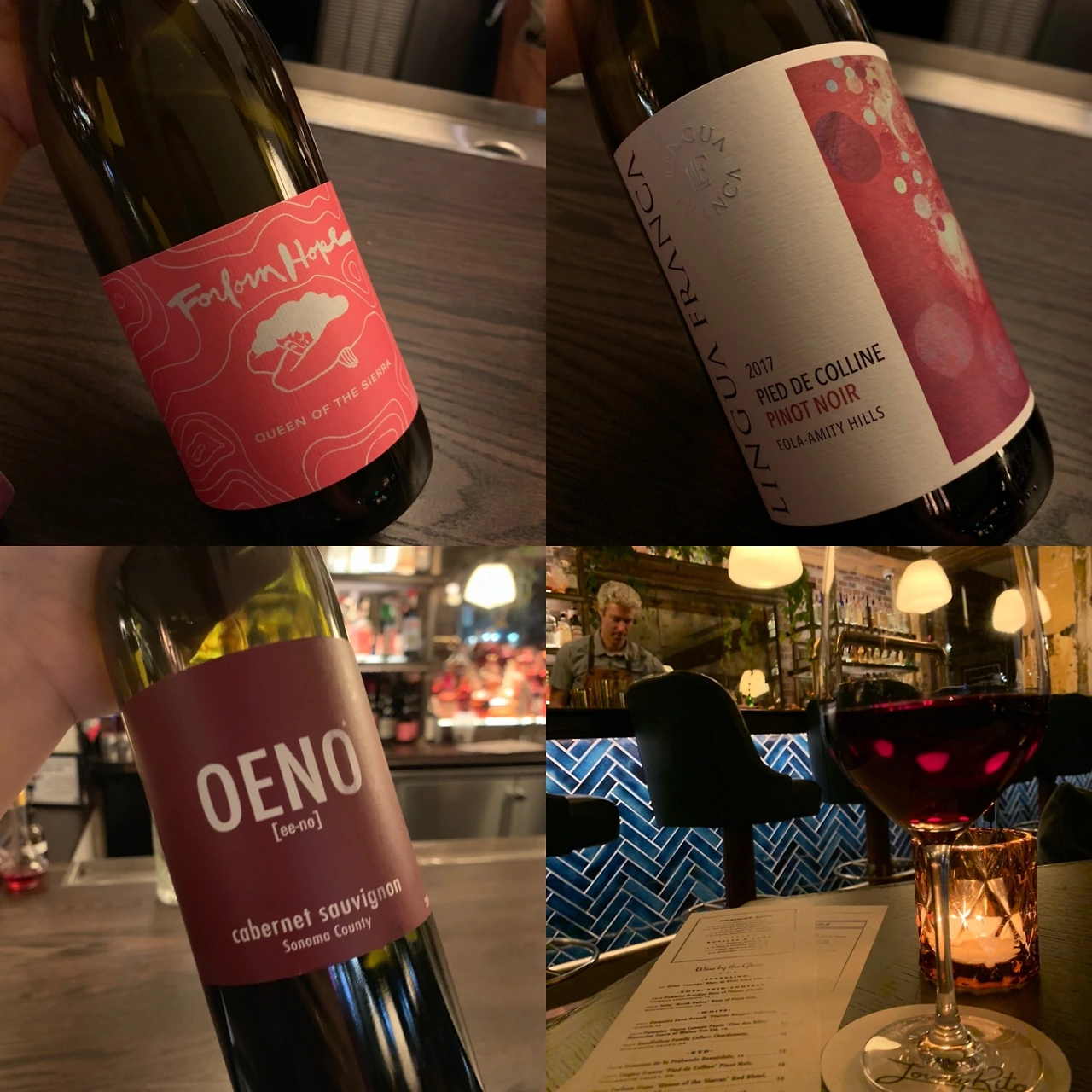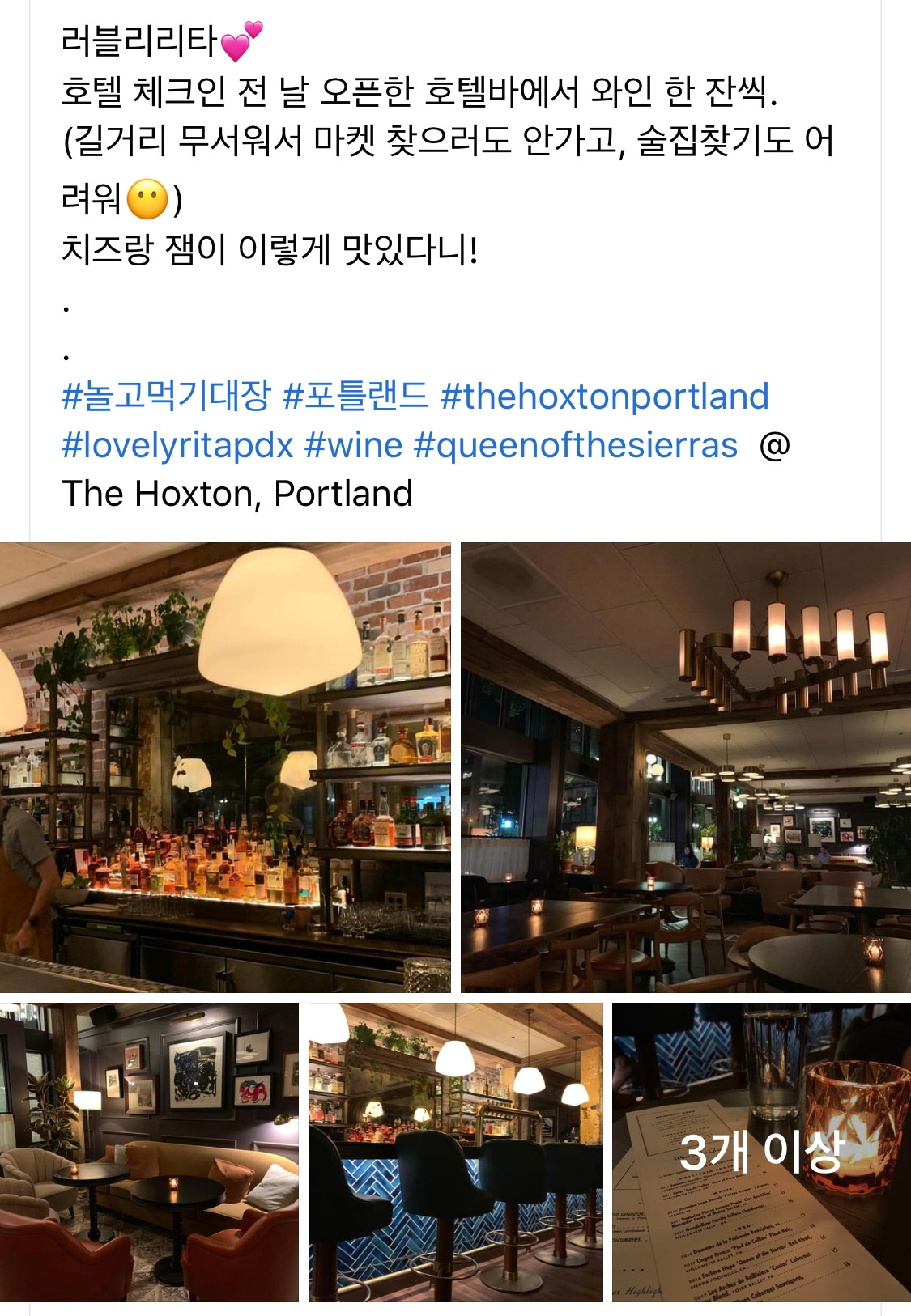 호텔 로비 바에서 오레곤 와인을 종류별로 맛봤다.