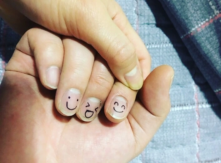 물론 찡그리는 얼굴 대신, 밝고 행복하게 웃고 있는 손톱을 선물했다.