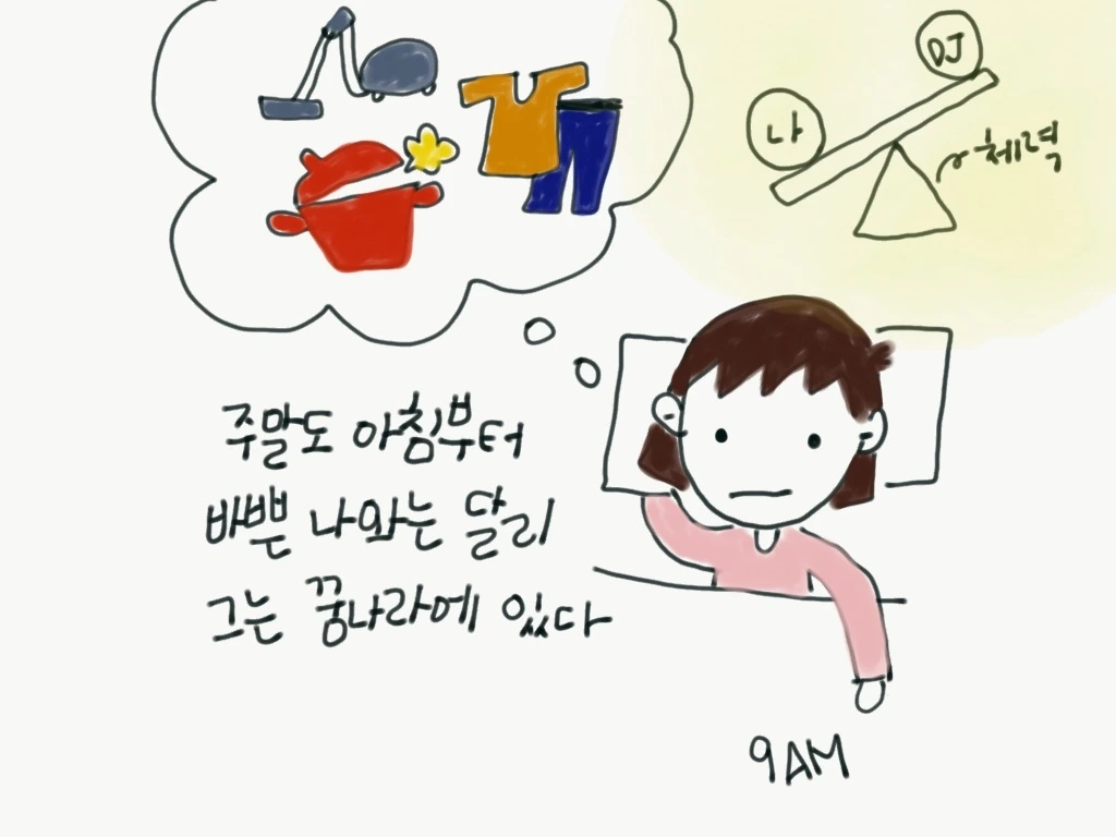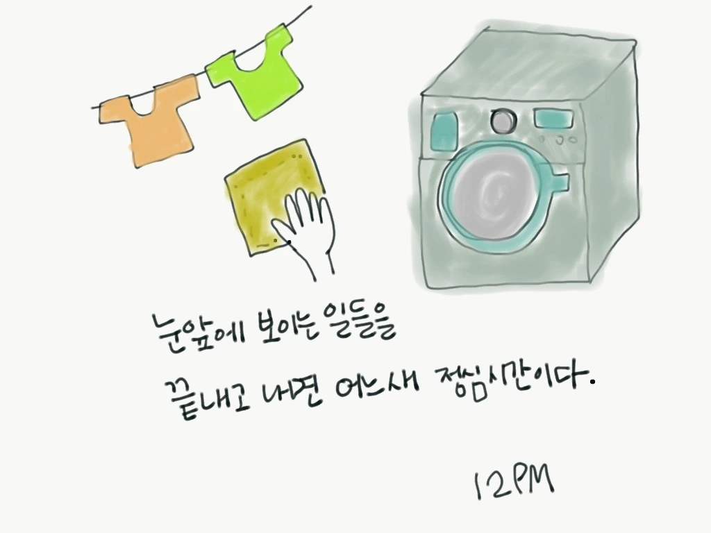 주말도 역시 눈을 뜨자마자 주중에 미뤄두었던 것들을 처리해야 한다는 의무감에 휩싸인다. 흰 빨래와 색이 있는 빨래를 나누어 세탁기에 차례대로 집어넣고, 빨래 건조대 위에 몇 일째 개어주길 기다리는 빨래들을 정리하고, 먼지가 뽀얗게 내려앉은 창틀과 바닥을 차례대로 닦고 커피 한잔을 마시고 나면 어느새 해가 머리 위에 걸려 있을 때가 많았다.