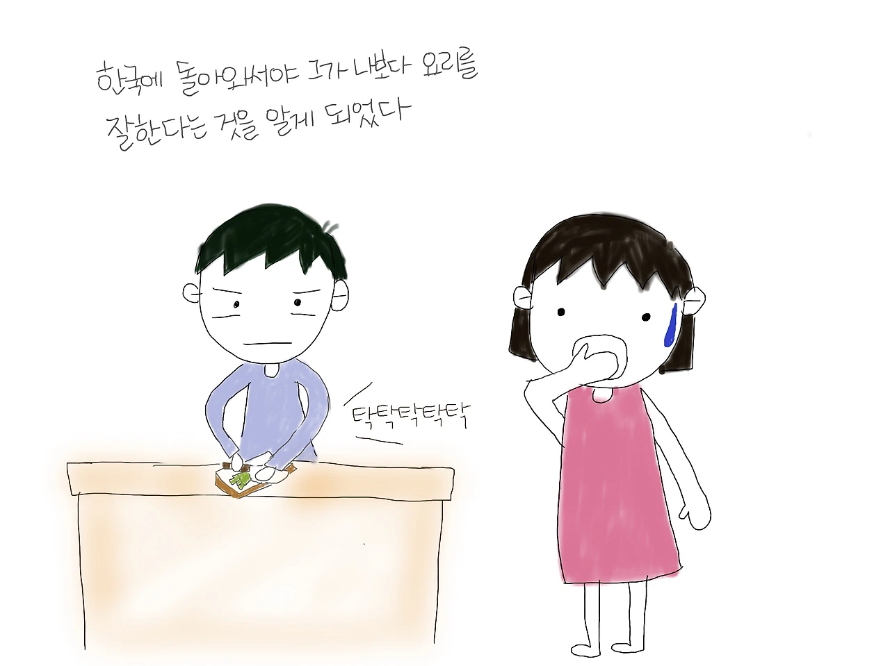한국인들과 함게 지내던 나의 쉐어 하우스에는 무려 9명이 함께 살아가고 있었다. 주방을 차지한다는 것은 조금은 눈치를 볼 수 밖에 없는 일이었기에 나는 언제나 운동을 마치고 와인과 대충의 끼니로 허기를 채우곤 했다. 그러나 그와 연애를 시작하고 나의 요리에 대한 욕구는 불타오르기 시작했고 나는 매일 저녁, 달리기를 하고 돌아와 그와 함께 저녁을 먹는 소소한 일상에 빠져 있었다. 요리라고는 하나도 모르는 것처럼 언제나 설거지를 도맡아 하던 그는 한국에 돌아와 음식을 하기 시작했다. 그가 만들어내는 음식들은 언제나 내가 한 것보다 고퀄리티의 결과물이었다.