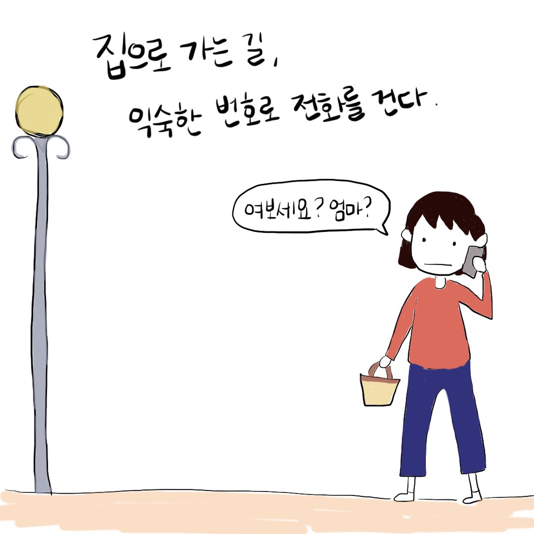결혼을 하고 나서는 전화 목록을 둘러보아도 전화를 할 만한 곳이 많지 않다는 것을 깨닫게 되었다. 괜한 망설임이라는 것을 잘 알지만 손가락은 언제나 익숙한 번호로 전화를 건다. 오늘도 어두운 집에 먼저 들어가는 일은 내 몫인데 그럴 때마다 엄마가 떠오르곤 했다.