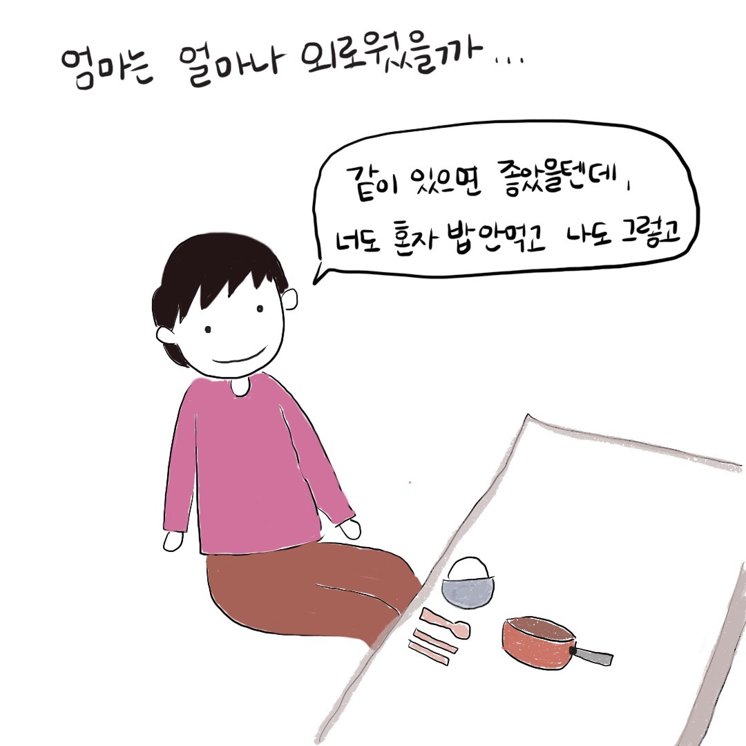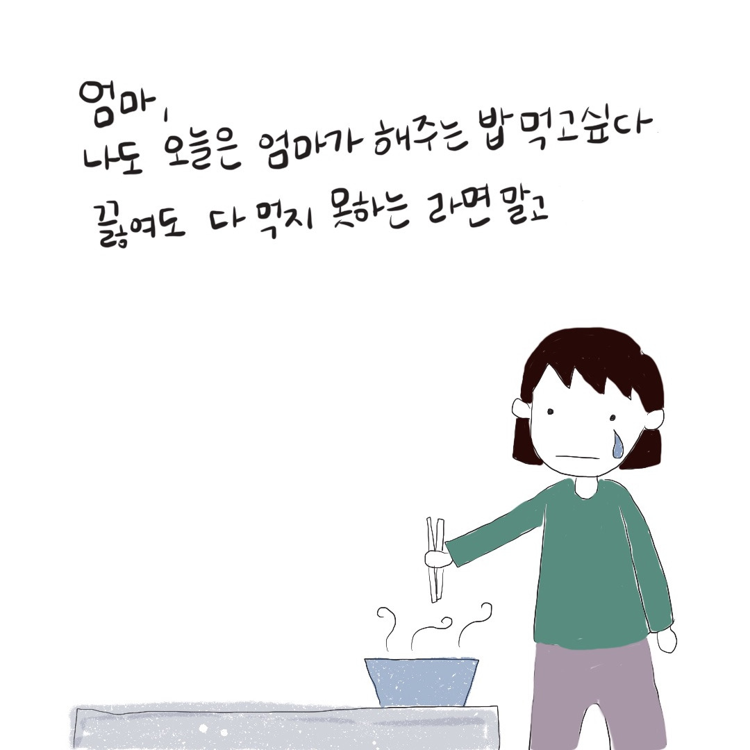 "엄마, 오늘은 나도 엄마가 해주는 따뜻한 밥 먹고싶다. 설거지는 내가 잘 할 수 있는데"
