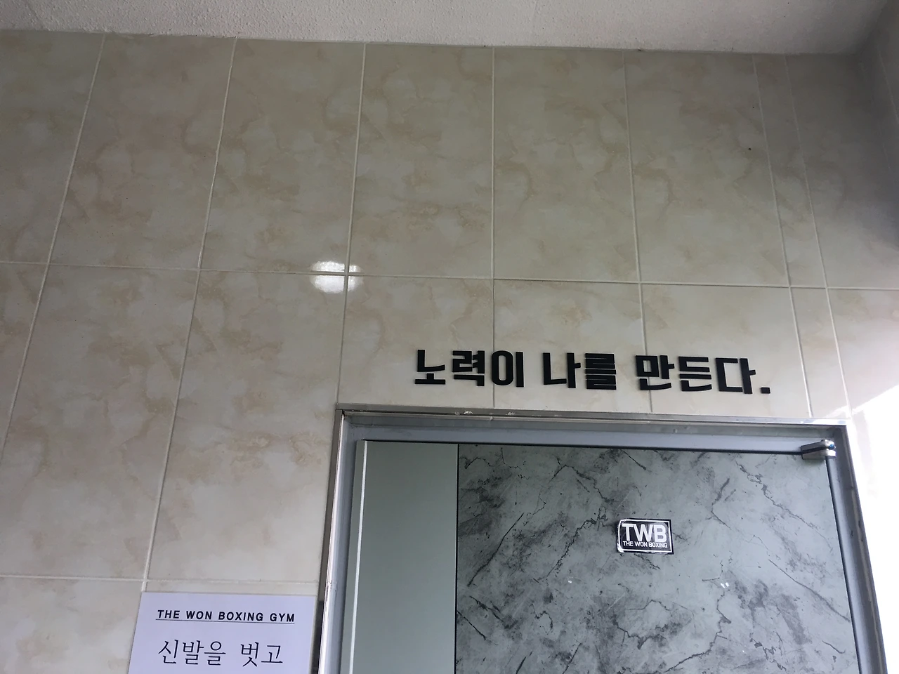 글쓰기 모임에 나가고, 그림을 그리고, 메이크업을 배우거나 책을 만드는 정적인 활동도 있었지만 기구 필라테스, 러닝 클럽, 복싱과 같이 땀을 흘리고 평소 쓰지 않는 근육을 움직이는 활동들도 꽤나 있었다. 나는 서울에 사는동안 조금 더 나를 시험해보고 싶었다. 내가 좋아하는 일들을 조금 더 구체적으로 찾아가는 노력, 비겁하게 나의 선택에서 도망치지 않고 책임지는 용기를 가질 수만 있다면 내 앞에 놓여진 오늘이 과거의 것들보다 괜찮았다고 말할 수 있을 것만 같았다. 그래서 나는 스스로를 단련시키는 일을 시작해보기로 했고 그 중 가장 먼저 떠오른 것은 크게 부담되지 않는 비용으로 도전할 수 있는 복싱이었다. 원데이 클래스로 딱 한번 경험했던 복싱은 단 두시간의 수업이었지만 꽤 강렬한 기억임에는 확실했다. 아무것도 모른 채 들어섰던 복싱장 출구에는 '평범한 노력은 노력이 아니다'라는 글귀가 붙어있었는데 나는 그 당연하지만 무게감이 느껴지는 문장이 무척이나 마음에 들었다. 원데이 클래스가 끝나고 집으로 돌아오는 길, 작은 모퉁이 카페에서 마셨던 아이스 아메리카노의 쌉싸름함이라던지 땀을 흘린 후 느꼈던 개운함은 쉬이 잊혀지지 않았다. 몇 개월이 지나도 생생하게 떠오르던 그 글귀를 다시 보고 싶다는 생각은 반년의 시간이 지난 뒤 내 발길을 복싱장으로 이끌고 있었다.