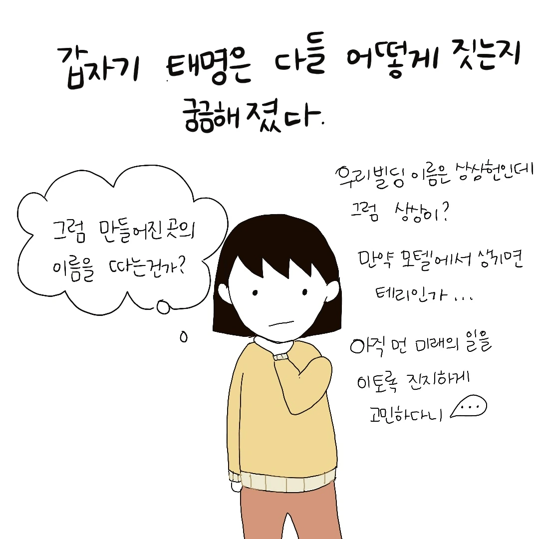 친구에게 아기가 생기면 가장 먼저 궁금해지는 것은 바로 아기의 태명입니다. (친구들의 상상력과 어휘능력에 감탄할 다름이지요...) 모리셔스에 신혼여행을 다녀와서 아기가 생긴 친구는 '모리(모리셔스에서 유래)'라는 이름을, 석가탄신일에 아기가 생긴 친구는 '모니(석가모니에서 유래)'를 그리고 호주 로드트립 중 아기가 생긴 또 다른 누군가는 '호주'라는 이름으로 태명을 지었다고 했습니다. 아직 생기진 않았지만 '언젠가'라는 생각을 하며 엉뚱한 상상을 하는 것이 요즘 잠들기 전 침대 속 대화입니다.