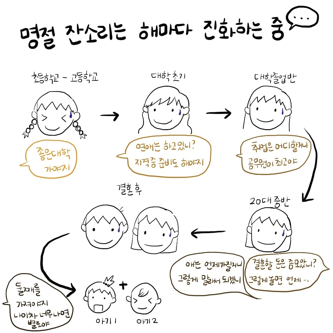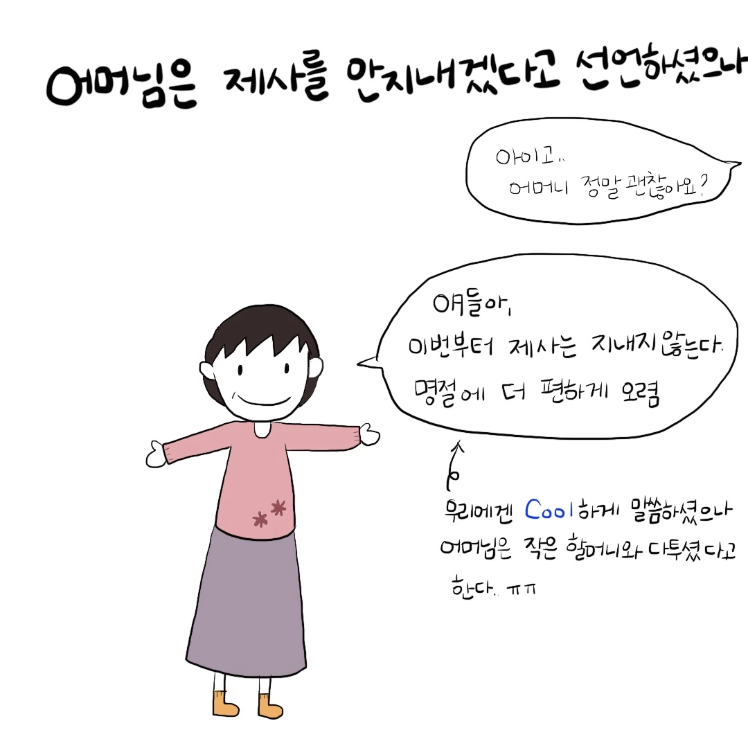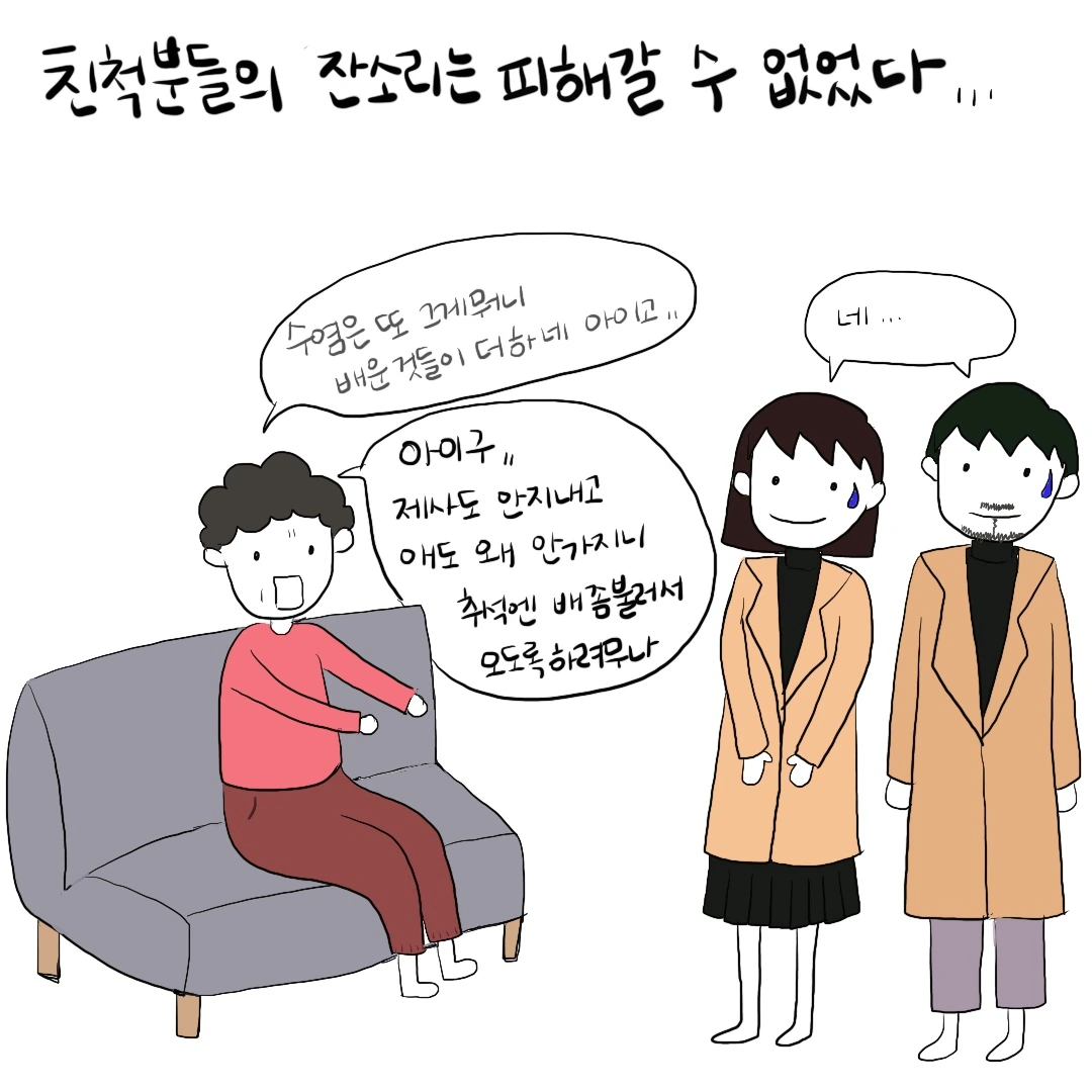 서른이 다 될 때까지 모아둔 돈 하나 없이 해외만 떠돌아다니던 저에게 부모님이 항상 하시던 말씀은 "제발 철 좀 들고 시집갈 준비 해라"이셨습니다. 하지만 막상 결혼을 하겠다고 선전포고를 하고 짝꿍을 데려가자 부모님은 생각보다 빠른 저의 실행에 많이 놀라셨던 모양입니다. 그렇게 잔소리에 마침표를 찍는 줄만 알았는데 홀쭉 말라 붙어 있는(?) 제 배를 보시고서 어른들은 추석에는 볼록하게 오라며 한 소리씩 던지셨습니다. 어머님의 제사 불이행 선언으로 신이 나있었는데 잔소리 폭격은 제사와 함께 없어지는 것이 아니더라고요 (..... 긁적)