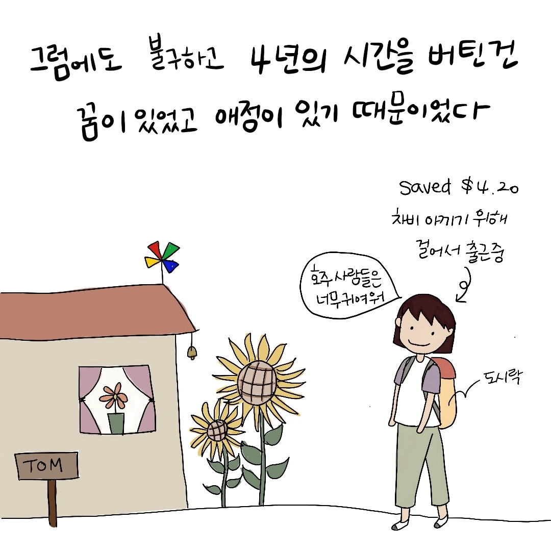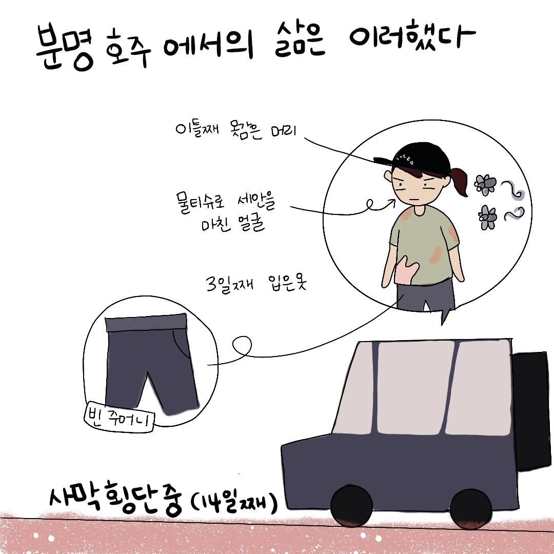 코로나 핑계를 대고 싶지만 사실 요즘의 게으른 상태는 분명 스스로의 마음 가짐 때문일 것입니다. '먹고는 살아야 하니까'라는 이유로 꾸역꾸역 외면하고 있었던 마음이 요즘은 부쩍 자주 소리를 지르곤 합니다. 분명 쉽지 않은 삶이었던 호주에서는 어떻게 4년이라는 시간을 버틸 수 있었던 걸까요? 그 시절의 저는 분명 가진 것 없이 세상을 유랑하던 부랑자의 모습이었는데 말입니다. 일과 시간이 끝나면 호주인들의 사무실 청소를 하면서 그들의 삶을 부러워하고 많은 돈을 벌어 호주를 떠나는 이들을 보며 부러워하기도 했습니다만 그곳에서는 돈보다 더 값지고 어려운 현실을 견딜 수 있었던 보석 같은 순간들이 매일 저를 위로해주었기에 버틸 수 있었던 것이었으리라 이제야 돌아보며 고개를 끄덕입니다.