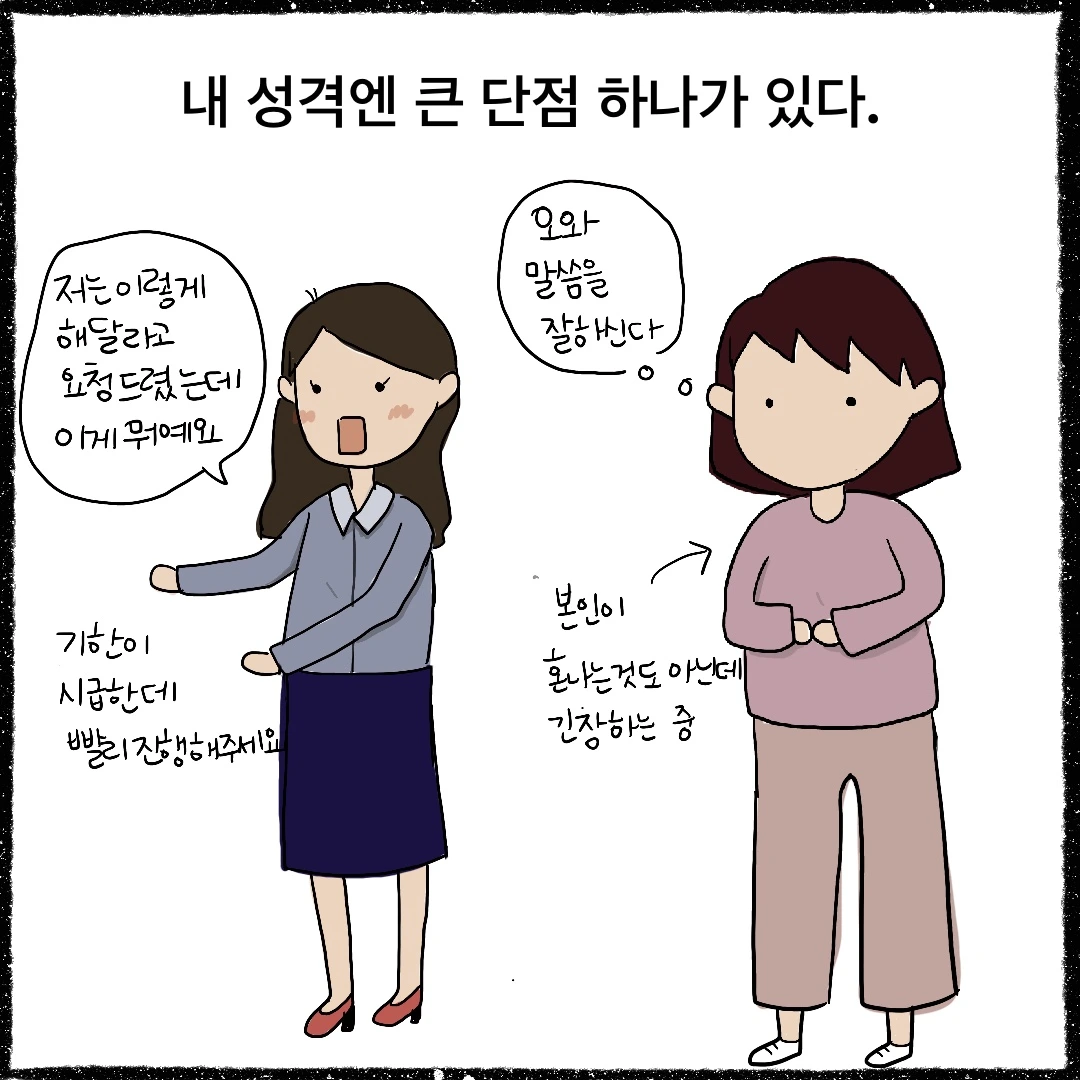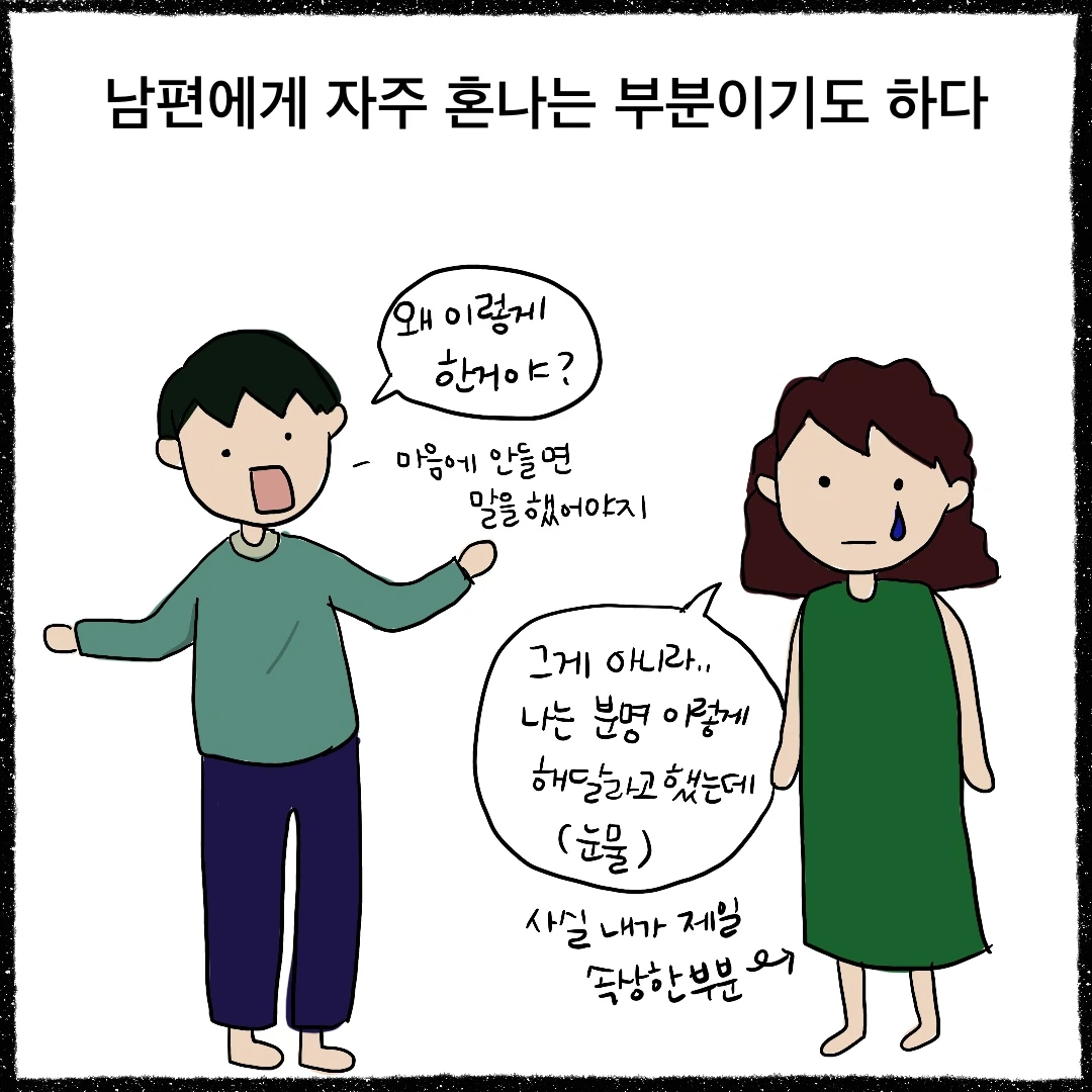 언제나 저를 격려해주는 남편이지만 가끔 화가 날 때면 저에게 생각을 제대로 말하라는 이야기를 하곤 합니다. 나중에 돌이켜 생각했을 때 속상하게 될 일이라면 조금 불편하더라도 원하는 바를 분명히 전달해야 된다는 말과 함께 말입니다. 법을 공부한 사람이라 객관적이고 논리적인 성향의 남편을 보면 부러울 때가 많습니다. 불편한 말이지만 조리있게 상대의 기분을 상하게 하지 않으면서 건내는 능력이 있는 것 같거든요.