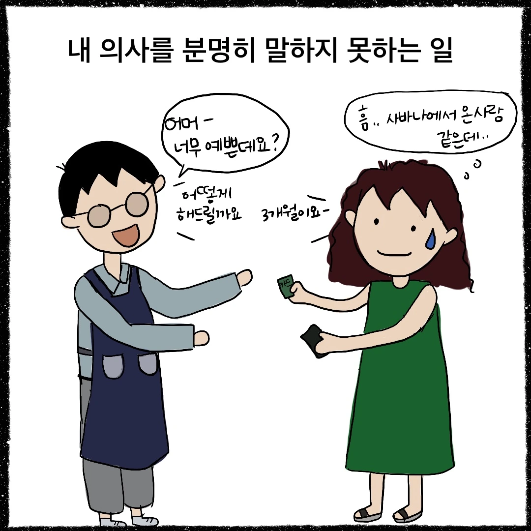 웨딩 촬영을 하는 날, 말도 안되는 머리를 하고 온 저를 보며 처음으로 크게 혼냈던 남편이 얼마 전 다시 저를 혼냈습니다. 그것은 바로 심바의 미용 때문이었습니다. 예시 사진을 들고 갔지만 발 모양이나 꼬리 모양, 몸 털의 길이, 주둥이 털 모양에 대한 답을 달라는 이야기를 들었을 때 결정이 더 어려워졌거든요. (처음 듣는 말들 이었습니다) ‘조금만 더 친절하게 알려주었다면 강아지 미용을 모르는 나도 선택하기 어렵지 않았을텐데’라고 생각하는 저와는 달리 남편은 모르는 것은 끝까지 물고 늘어지는 성향이기에 저를 이해하기 어려운 것이겠지요.
