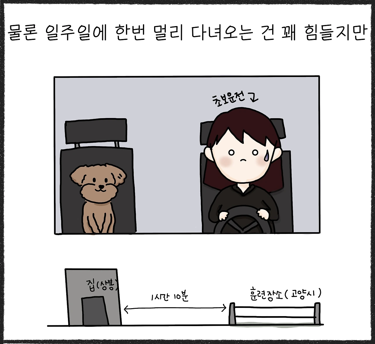 강아지를 처음 데리고 왔을 때 녀석을 평생 책임지겠다는 다짐이 흔들리지 않도록 아주 아주 아주 큰 마음을 먹고 심바와 함께 어질리티 수업을 듣게 되었습니다. 어질리티는 강아지들이 견주와 호흡을 맞추어 장애물을 넘는 독 스포츠인데요, 클래스에서 가장 어리고(?) 작은 심바는 예상외의 선전에 많은 이쁨을 받고 있답니다. 하루하루 조금씩 나아지고 있는 심바를 볼 때마다 얼마나 기특하고 예쁜지 모릅니다. 에너지 소모를 하고 들어와 소파에 쓰러져 잠든 녀석을 볼 때면 '가장 행복한 강아지가 바로 여기 있구나'라는 생각을 하게 되기도 합니다.